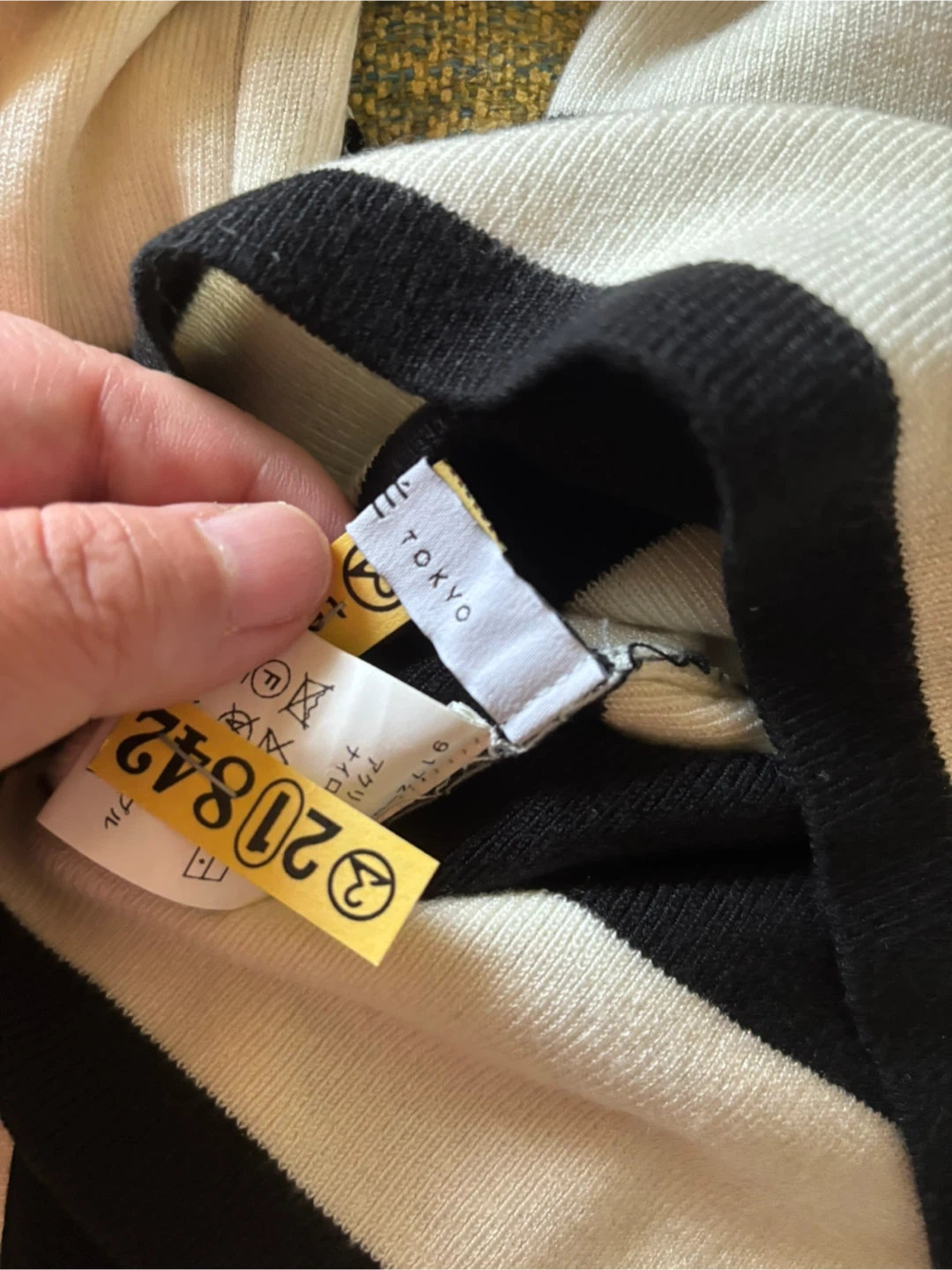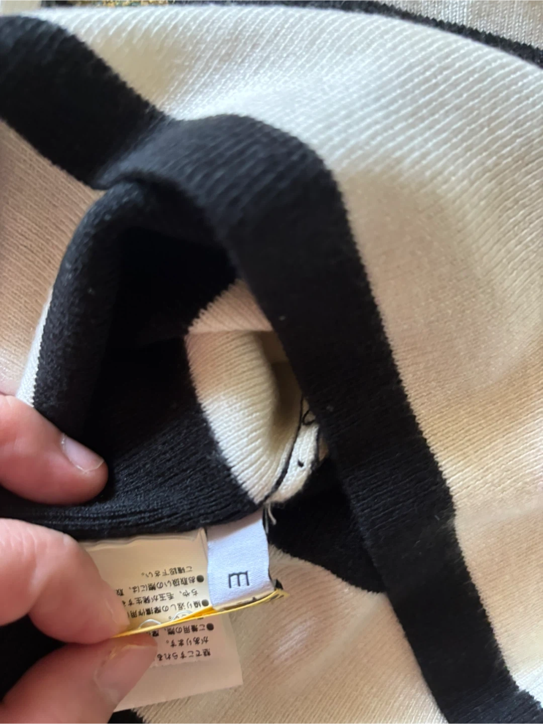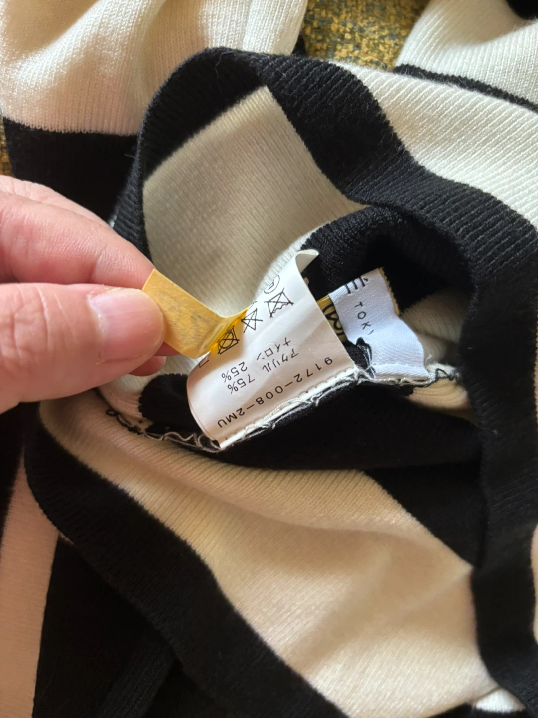 エトレトーキョーのボーダーニットです ・カラー:白、黒 ・サイズ:M ・素材:アクリル75%、ナイロン25% ・型番:9172-008-2MU ・使用感少なめ クリーニング屋さんでクリーニング後に保管 最初の写真を前にして着たり後ろ側を前にして着れます。 凄く柔らかい素材で着心地もシルエットも良かったです。 妊娠発覚したら着るのを泣く泣くやめた商品です。 宜しくお願いします。 中古品であることご了承くださいm(_ _)m