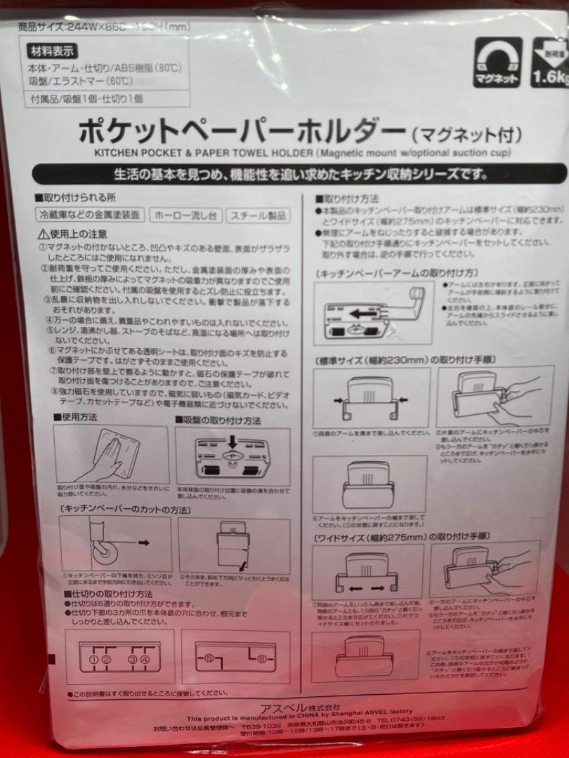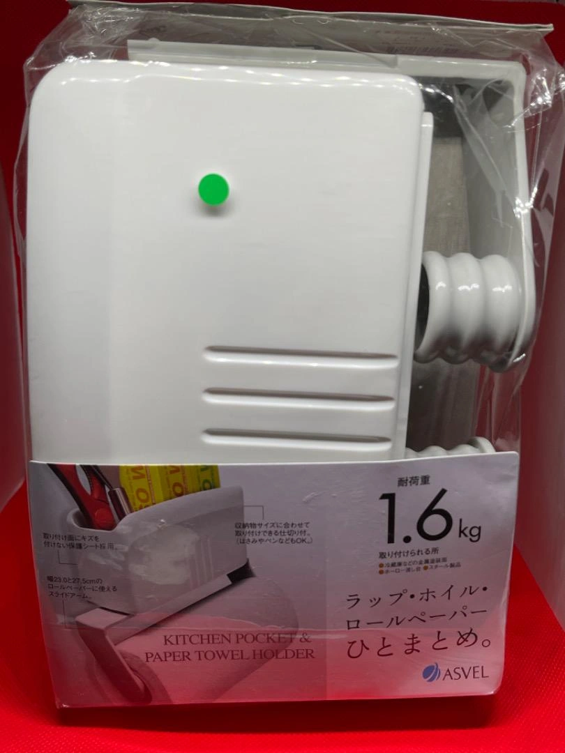 ご覧いただきありがとうございます。 【商品状態】 未開封 未使用の商品です。 アスベル ポケット・ペーパーホルダーマグネット付 「レア」ホワイト 2452 サイズ:約幅244×奥行86×高さ190mmcm 本体重量:約424 材質:本体/アーム/仕切り/ABS樹脂、吸盤/エラストマー 原産国:中国 付属品:仕切り1個、吸盤1個 耐荷重:1.6kg 取付可能場所:冷蔵庫などの金属塗装面、ホーロー流し台、スチール製品 こちらは非喫煙者で、ペットもおりませんので、匂い等の心配はないと思いますが、素人の自宅保管であることをご理解いただけますようお願いいたし ます。 種類...ペーパーホルダー。ご希望の方はお気軽にご連絡ください。