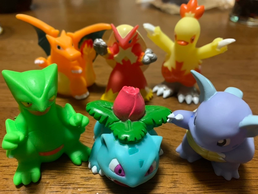 ポケモンゆび人形6種類です。 フシギソウ、ジュカイン、カメール、ワカシャモ、バシャーモ、リザードン 十数年前に購入しましたが、汚れ、傷などは見当たりません。