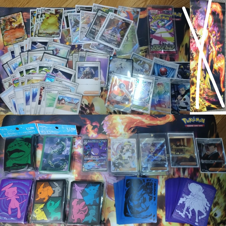 ポケモンカードゲームの引退品です。 写真に写っているもの全てになります。 プレイマットは含めません。 取引を楽にするためにカード枚数はそこまで多くなっておりません。 状態に関しては全てプレイ用になります。 すり替え防止のため取引後に返品等は受け付けません。 商品に関しては全て画像でご確認ください。 PayPay対応していますが本人確認ができていないので1度LINEを繋いで送金してもらいます。 その他現金のみ受け付けてます。