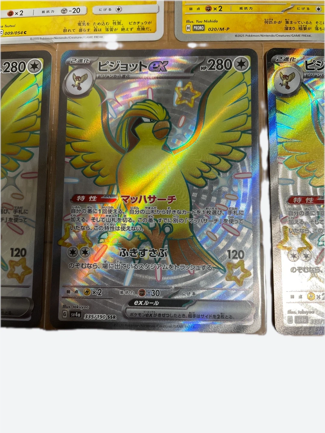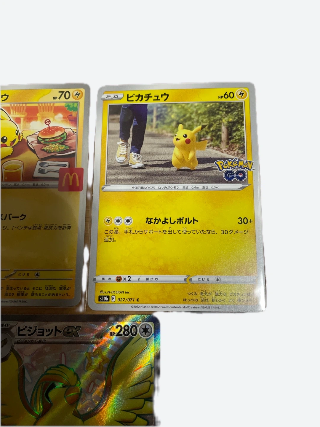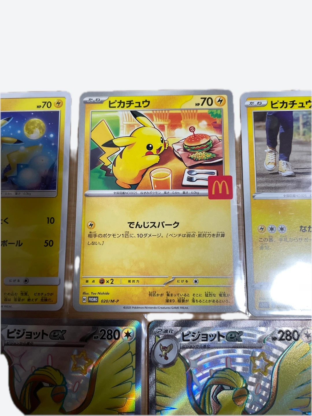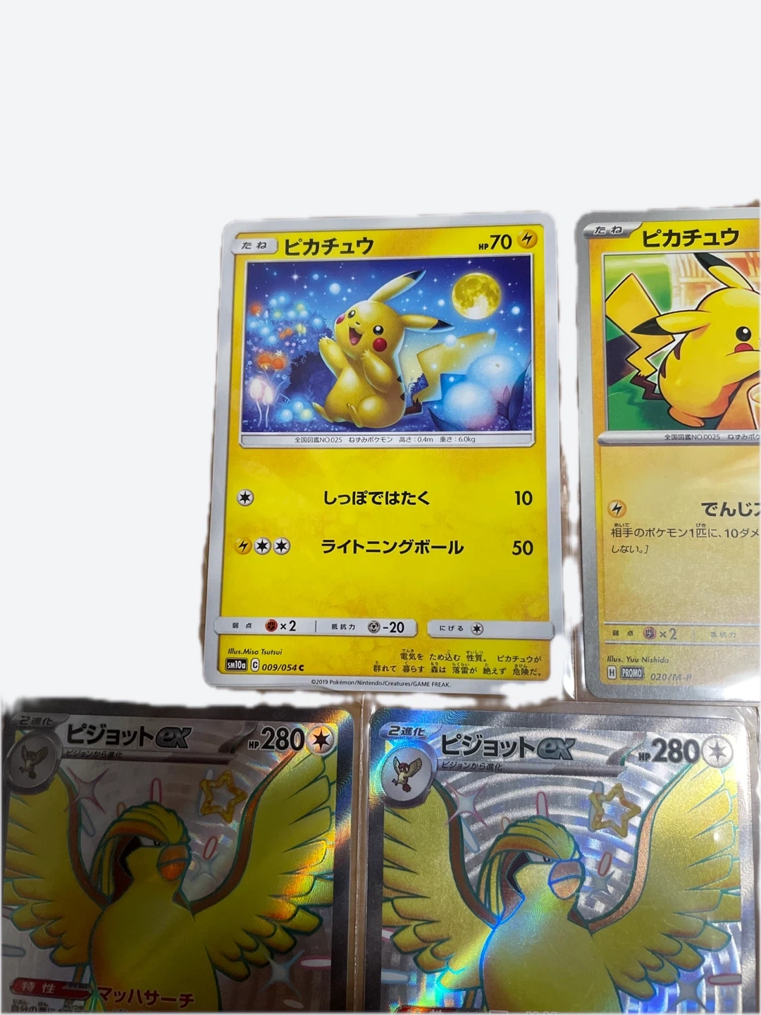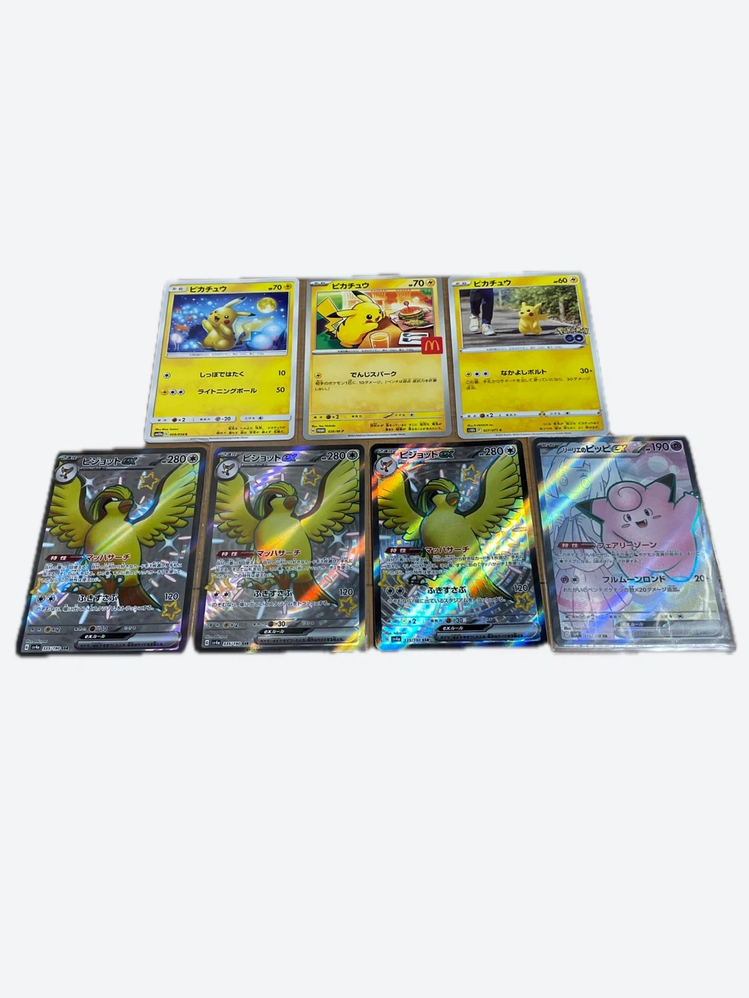 ポケモンカードのお買い得なセットです。 美品です。 ・ピカチュウ(マクドナルドコラボなど)3枚 ・ピジョットex SSR3枚 ・リーリエのピッピex SR1枚 ・状態は写真でご確認ください 大事にして頂ける方にお譲りいたします。 中古品であることをご了承ください。 こちらのカードは100%正規品です。
