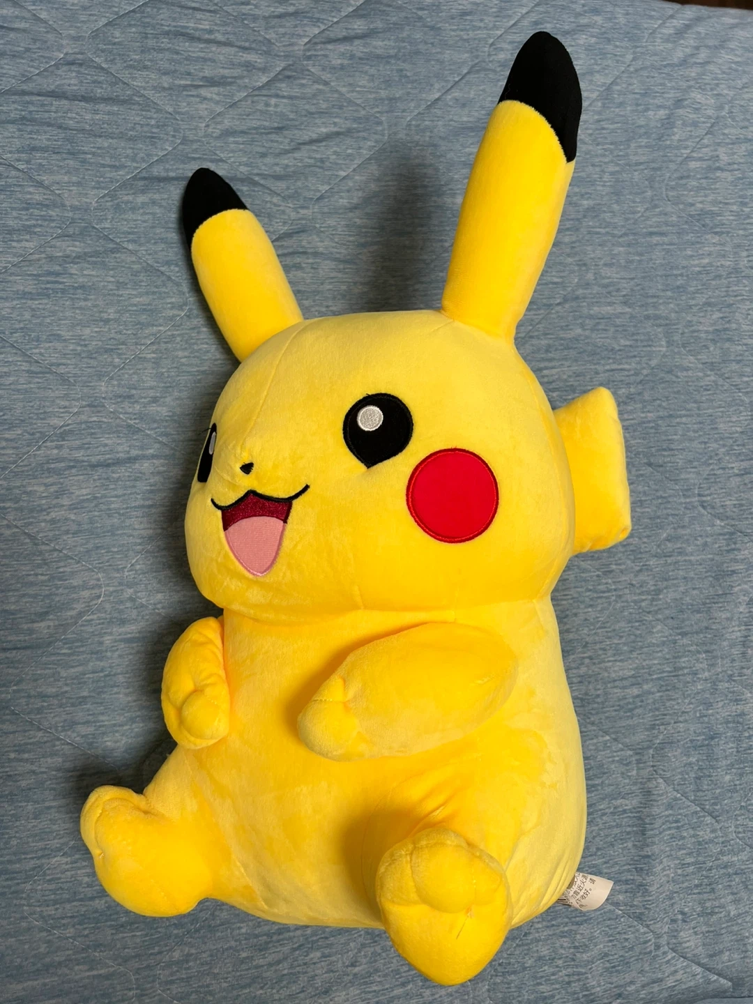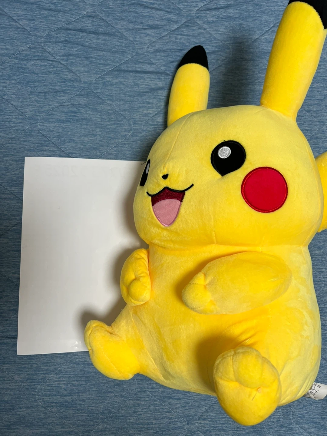 ピカチュウのぬいぐるみです ・カラー:イエロー ・状態:使用感少なめ、全体的にきれい 白い紙はA4ですがサイズの参考にしてください。 中古品であることご了承ください
