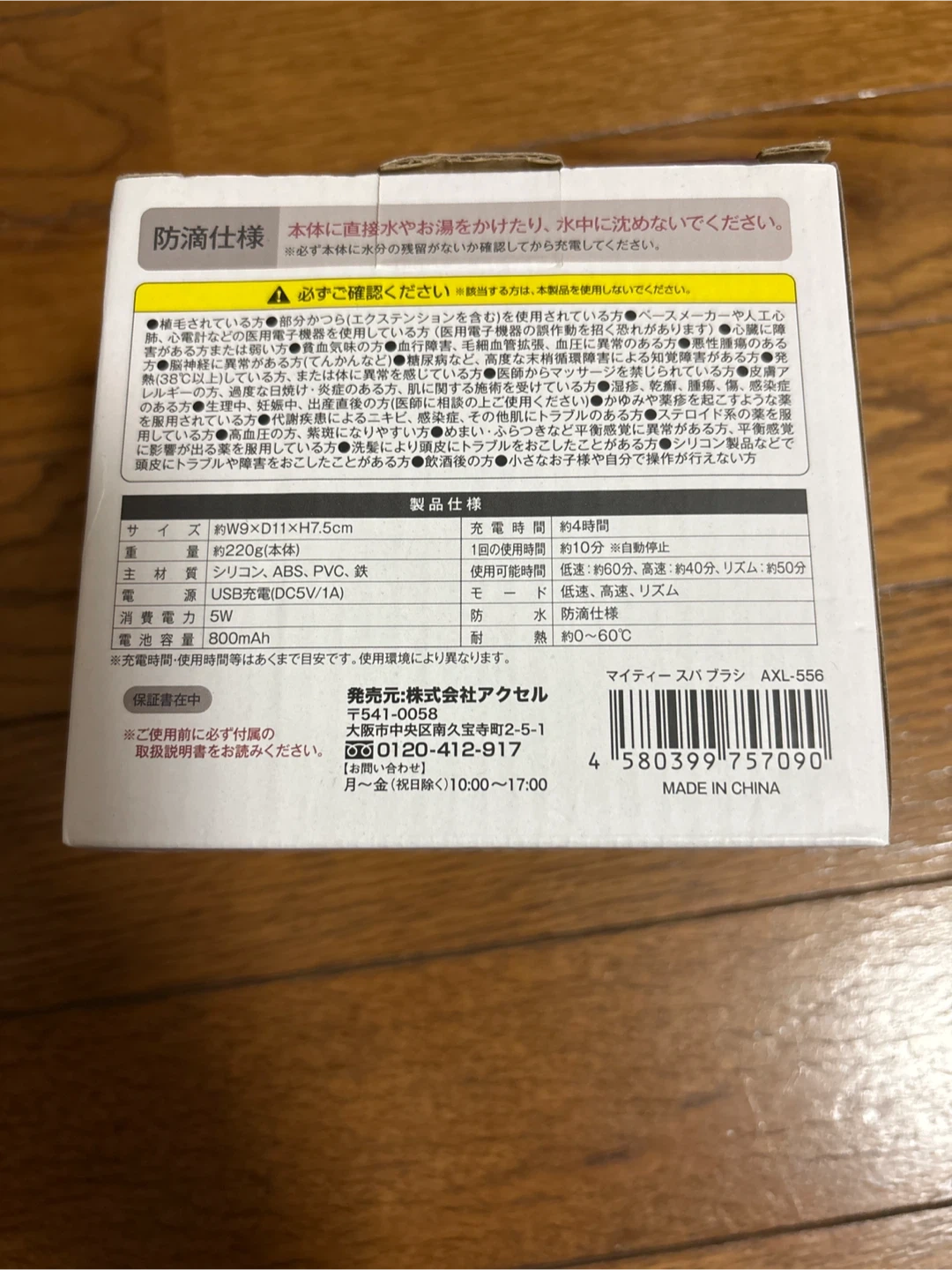 マイティースパブラシです 【情報】 サイズ:約W9×D11×H7.5cm 重量:約220g(本体) 材質:シリコン、ABS、PVC、鉄 電源:USB充電(DC5V/1A) 消費電力:5W 電池容量:800mAh 充電時間:約4時間 使用可能時間:低速約60分、高速約40分、リズム約50分 モード:低速、高速、リズム 防水:防滴仕様 型番:AXL-556 【状態】 未使用品です ご不明点があればお気軽にご連絡ください