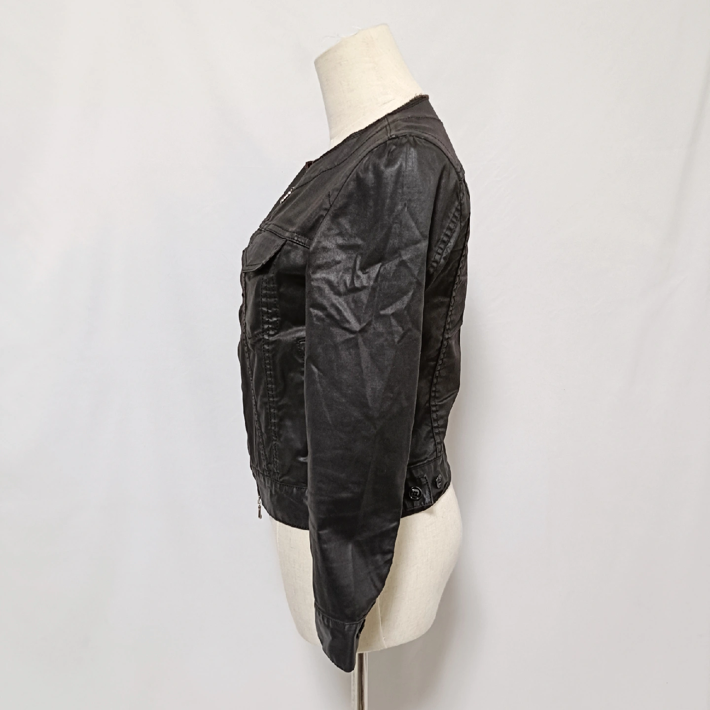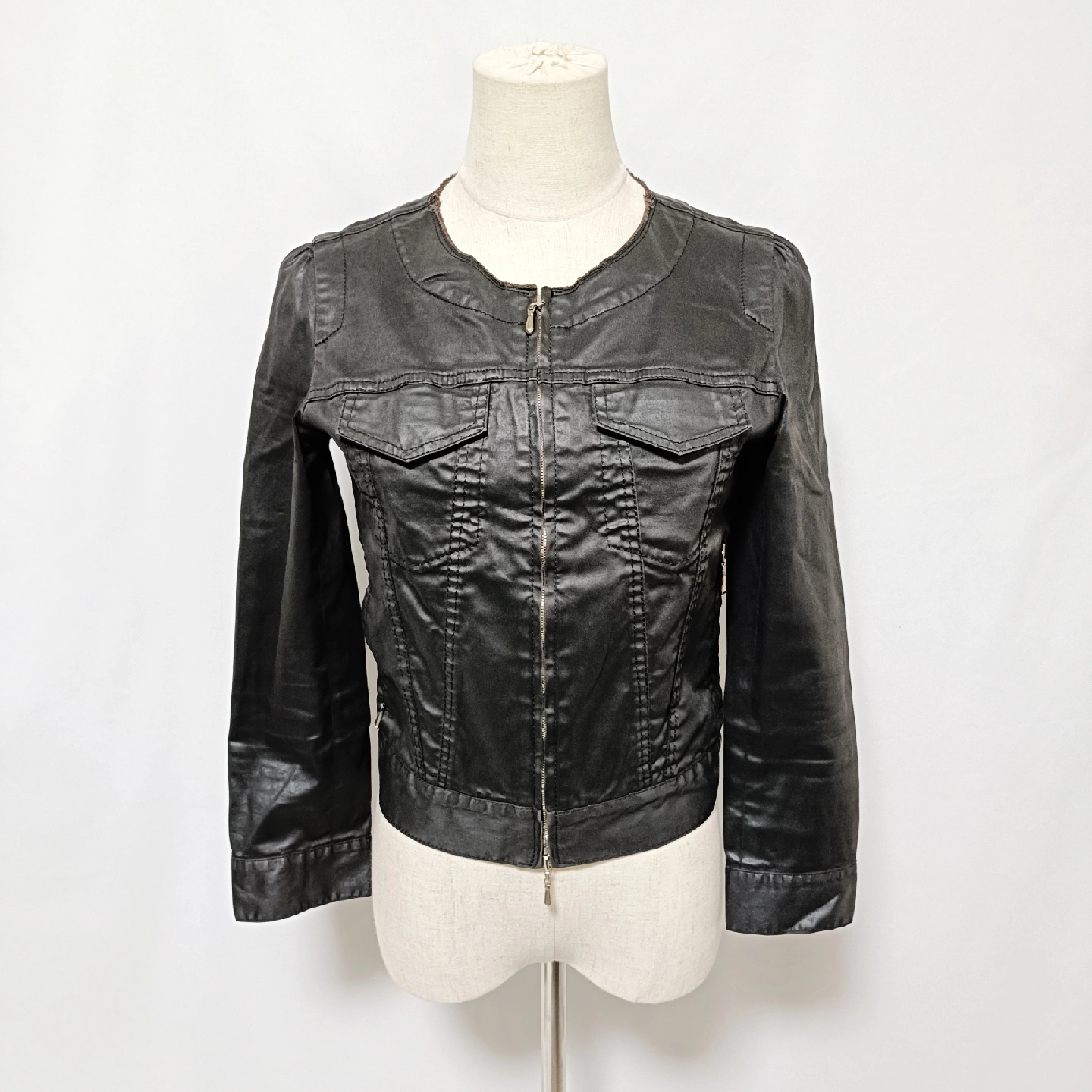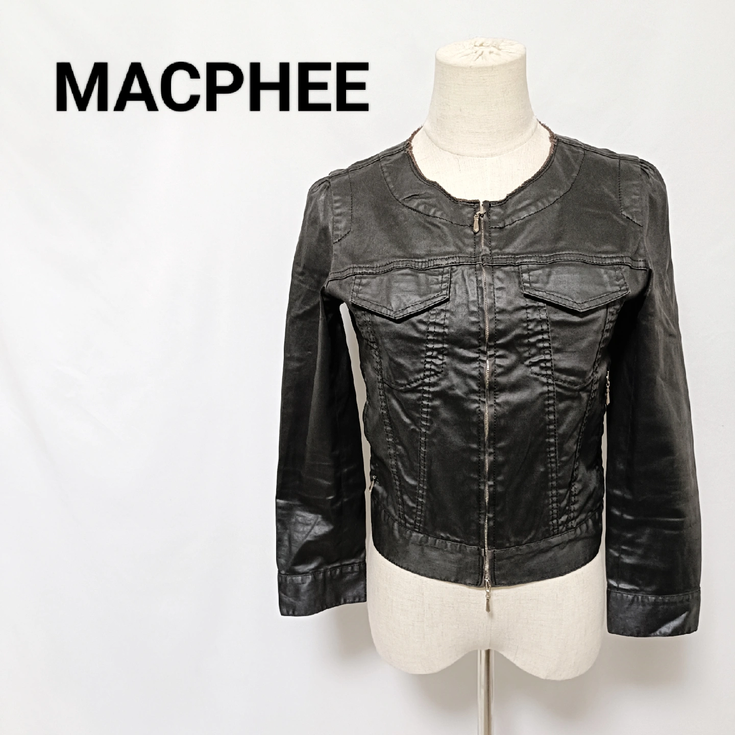 ご覧いただきありがとうございます! **MACPHEE (マカフィー)**のショート丈ノーカラーブルゾンです。 光沢のあるコーティング加工が施された素材が特徴で、まるでレザーやワックスドデニムのようなシックでクールな印象を与えてくれます。 カジュアルなブルゾンでありながら、ノーカラーデザインなのできれいめなスタイルにも合わせやすい万能アウターです。 #joymaxお得なプロフへ #ゆうの古着屋さん_レディースアウター □商品名□ 【MACPHEE】マカフィー ノーカラー ショート丈 ブルゾン 黒 38 コーティング加工 □ブラ ンド□ MACPHEE マカフィー □表記サイズ□ 38 □実寸サイズ(cm) □ 着丈:46 肩幅:38 身幅:45 袖丈:52 ※実寸につきまして多少の誤差はご了承ください。 ※表記サイズだけではなく実寸のサイズをご確認ください。 □カラー□ ブラック □素材□ 綿98% ポリウレタン2% 表面:ポリウレタンコーティング加工 □コンディション□ 目立った汚れやダメージなど特にございません。 ※汚れはできる限り写真にて掲載しております。まずは画像をご確認ください。 出品一覧→ #joymaxお得なプロフへ どうぞよろしくお願い致します。 □商品管理番号□ JJ2-W-5441