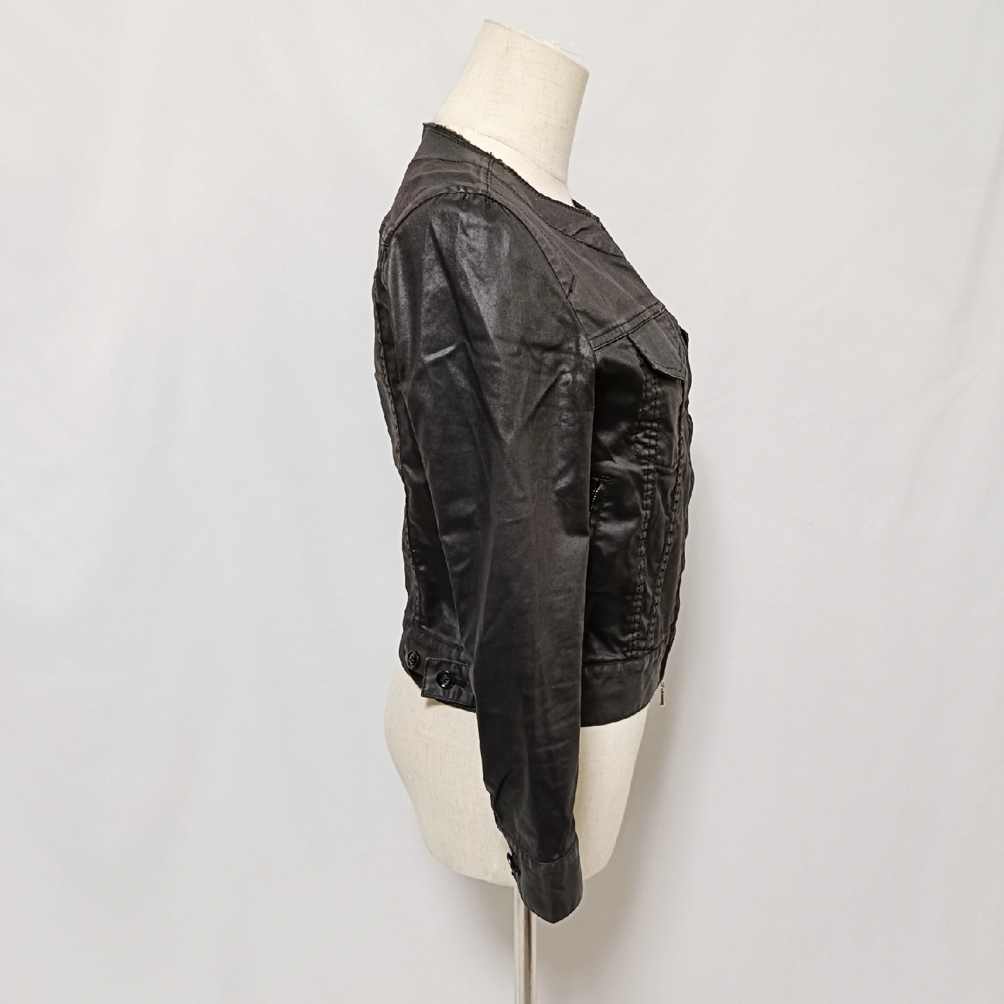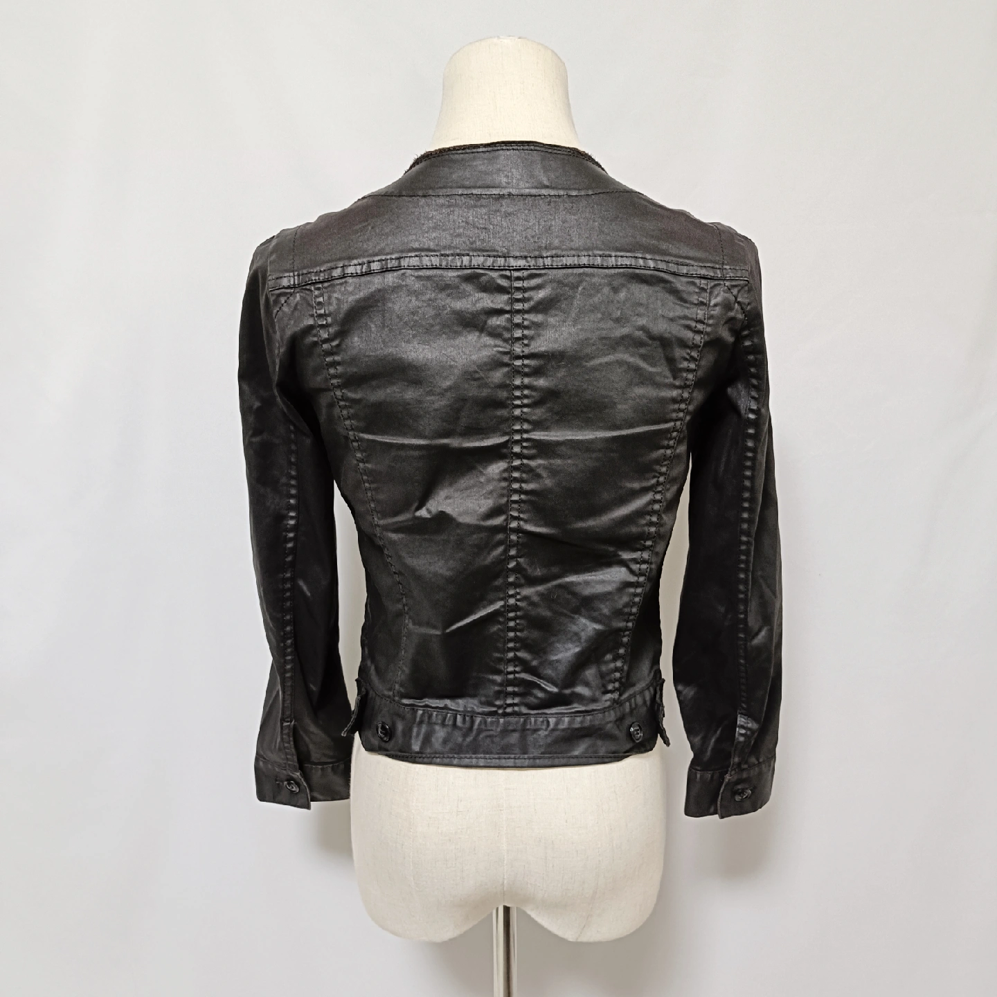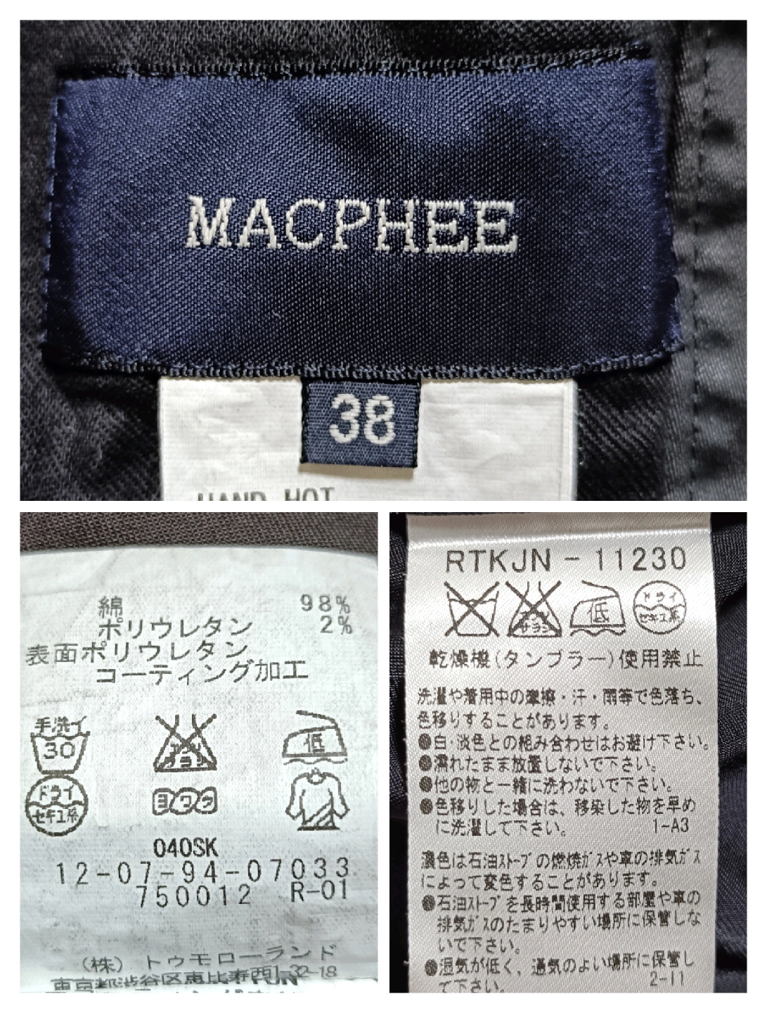 ご覧いただきありがとうございます! **MACPHEE (マカフィー)**のショート丈ノーカラーブルゾンです。 光沢のあるコーティング加工が施された素材が特徴で、まるでレザーやワックスドデニムのようなシックでクールな印象を与えてくれます。 カジュアルなブルゾンでありながら、ノーカラーデザインなのできれいめなスタイルにも合わせやすい万能アウターです。 #joymaxお得なプロフへ #ゆうの古着屋さん_レディースアウター □商品名□ 【MACPHEE】マカフィー ノーカラー ショート丈 ブルゾン 黒 38 コーティング加工 □ブラ ンド□ MACPHEE マカフィー □表記サイズ□ 38 □実寸サイズ(cm) □ 着丈:46 肩幅:38 身幅:45 袖丈:52 ※実寸につきまして多少の誤差はご了承ください。 ※表記サイズだけではなく実寸のサイズをご確認ください。 □カラー□ ブラック □素材□ 綿98% ポリウレタン2% 表面:ポリウレタンコーティング加工 □コンディション□ 目立った汚れやダメージなど特にございません。 ※汚れはできる限り写真にて掲載しております。まずは画像をご確認ください。 出品一覧→ #joymaxお得なプロフへ どうぞよろしくお願い致します。 □商品管理番号□ JJ2-W-5441