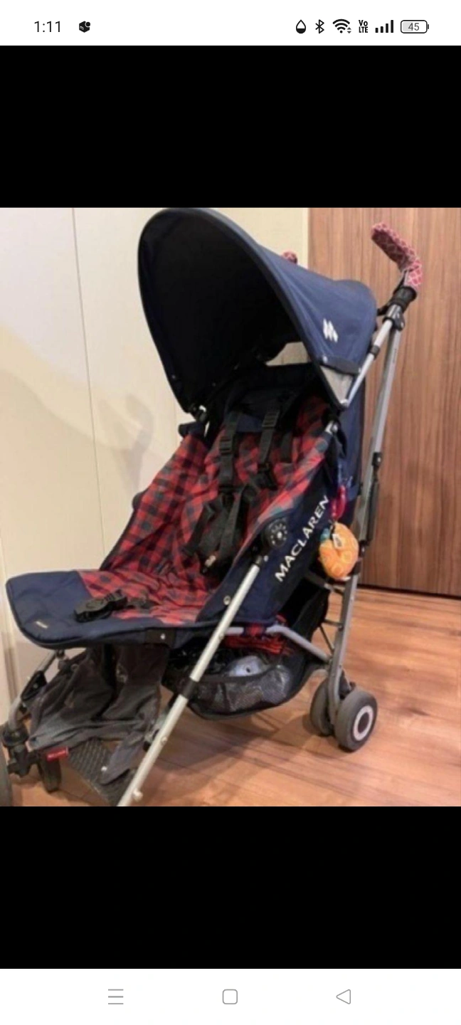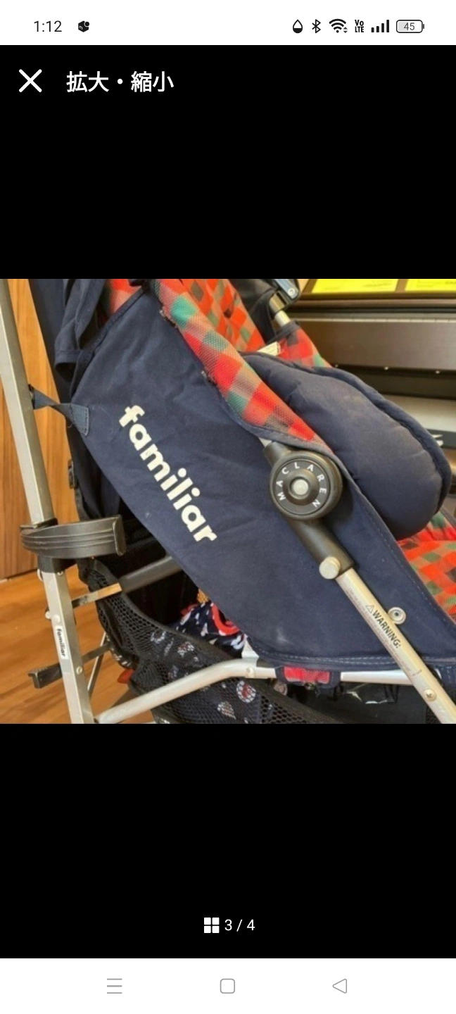 ・ブランド:マクラーレン、ファミリア ・ベビーカー ・カラー:ネイビー、赤チェック柄 ・使用感あり