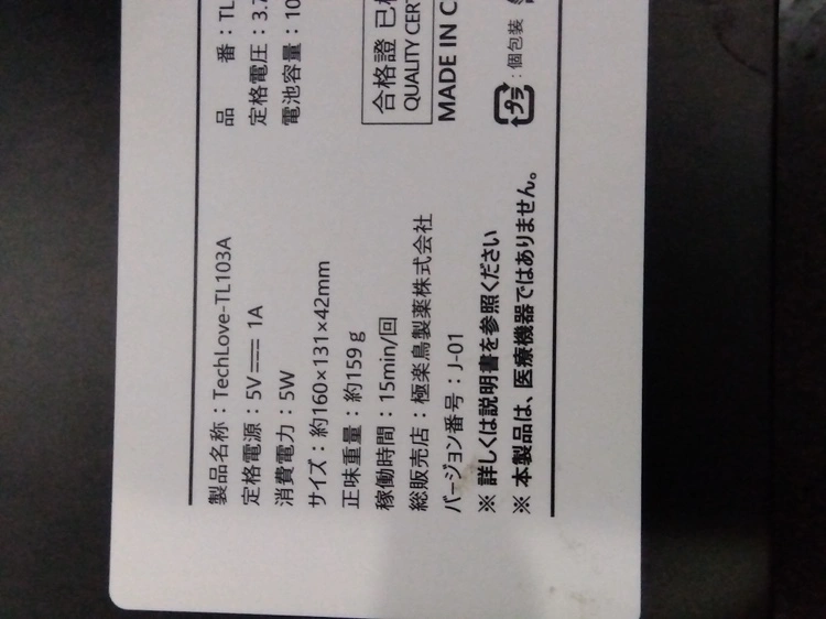 https://www.biccamera.com/bc/item/9263484/ ギフトでいただいて、1回試しただけです。 充電の付属コードは欠品してますが一般的なマイクロUSBで充電できます。 中古で良ければケーブルも適合するものを差し上げます 職場に日中で受け渡しか 夜でしたら代々木上原の自宅近くで受け渡し可能です。 (職場においてあるので自宅受け渡しの場合は約束に猶予がないと対応難しいです) 首にかけるだけ、リラックス。 多忙なライフスタイルに、 温熱&EMSダブル機能で、 首の奥までポカポカリフレッシュ ■心地よく、快適に、音声ガイダンスつき 4枚の電極パットで心地良い刺激の広がりで、魔法なようなリフレッシュタイム。 音 声ガイダンスつきで、使いやすい。 ■刺激の強さレベルは20段階 細かい強さレベル調整ができ、自分好みの強さでご使用できます。 ■恒温設定で心地良い暖かさ 42℃の恒温温度設定で、熱すぎる心配がなくご使用できます。 ■持ち運びやすいサイズと高級感溢れる専用ポーチ 重さはたったの159gで、専用ポーチつきで持ち運びやすく、いつでも、どこでもリフレッシュ。 ■EMSモードは4つ ボタンを操作して、モード種類を変え、EMSのリズムが変わります。 ・本体サイズ:約160×131×42mm ・重量(本体):約159g ・セット内容:製品本体 ×1、取扱説明書(保証書) ×1、専用ポーチ×1