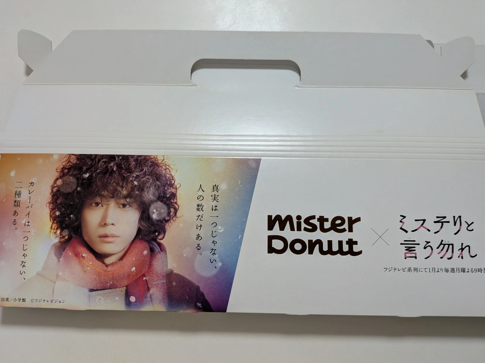ミスタードーナツの箱です。 大小です。 1と2は表と裏の写真で、3と4も表と裏です。 ・使用感少なめ ・目立つキズや汚れなし 菅田将暉さんがCMにでていた時の ミスドの箱です。 キレイに保管しておりました。 ファンの方なら気になる品物だと思います。 中古品であることご了承ください。
