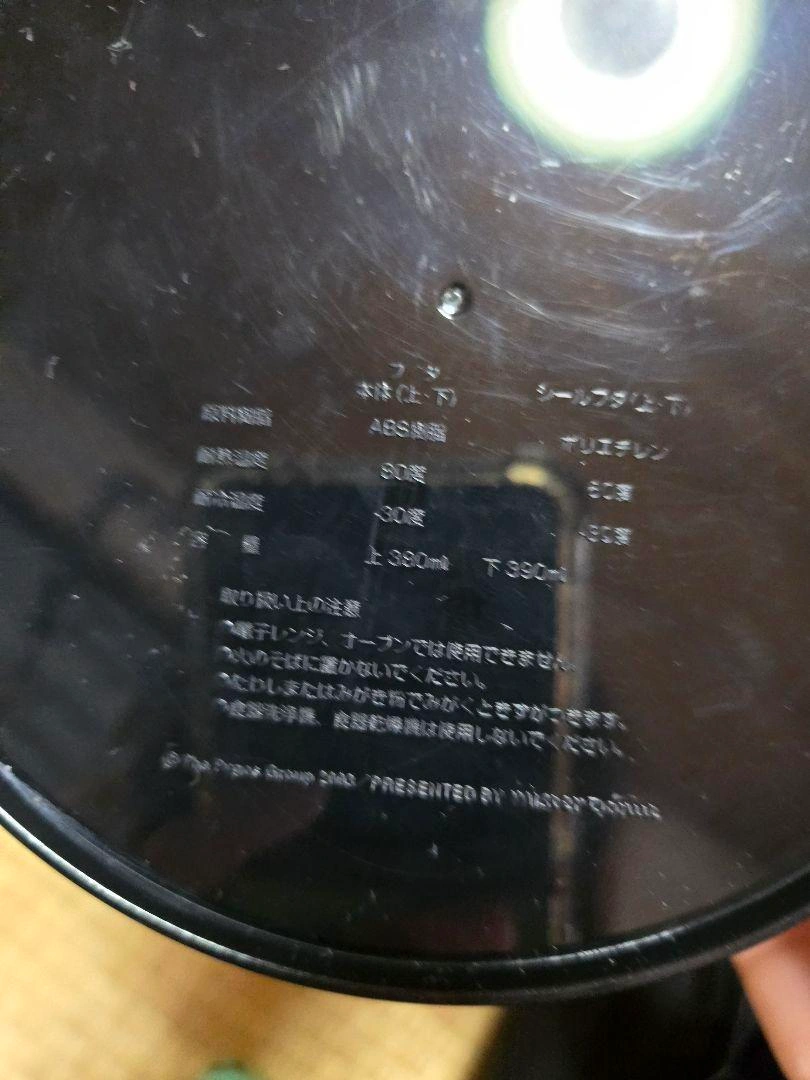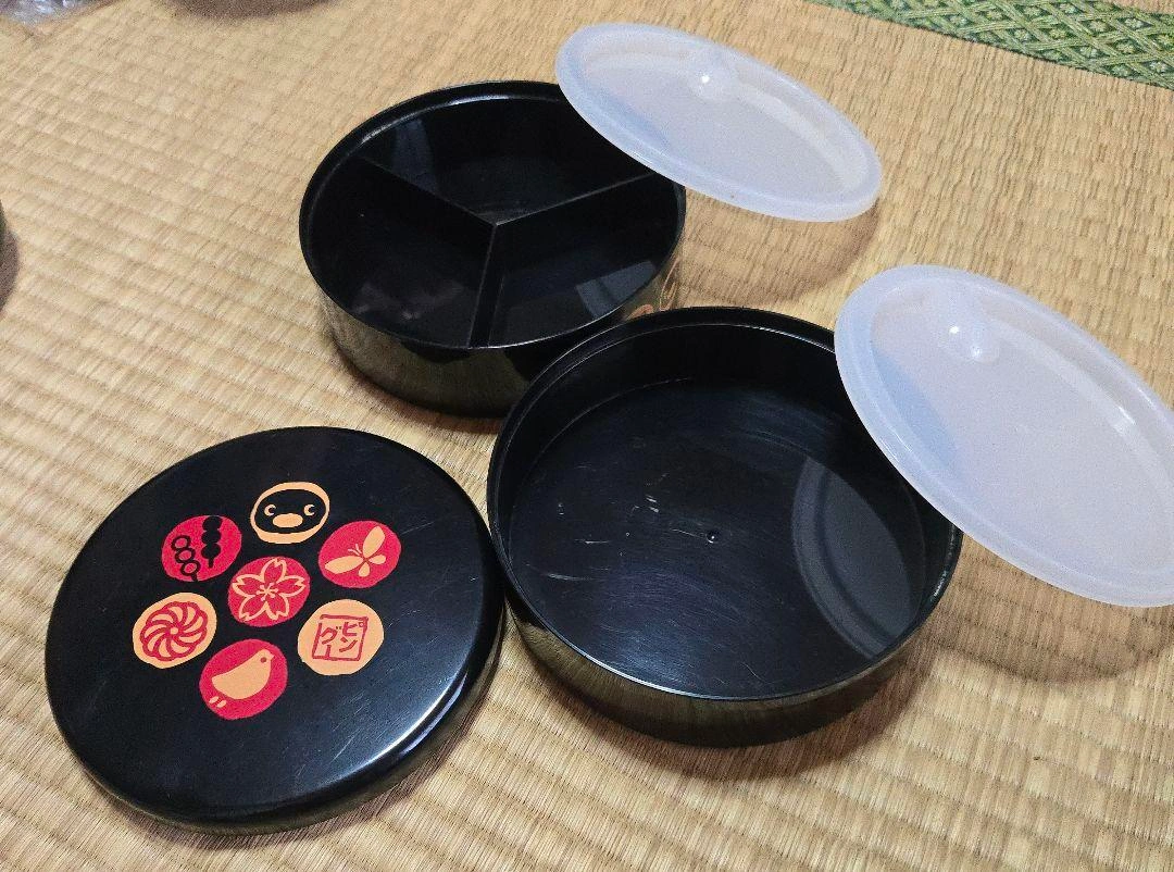あたたかさ未使用ですが、自宅保管のためご理解頂ける方のみご購入お願いいたします。 - Material: ABS樹脂 - Capacity: 上390ml 下390ml - Design: 和風の模様が施された重箱 - Color: 黒 直径14cm 高さ10cm ご希望の方はお気軽にご連絡ください。