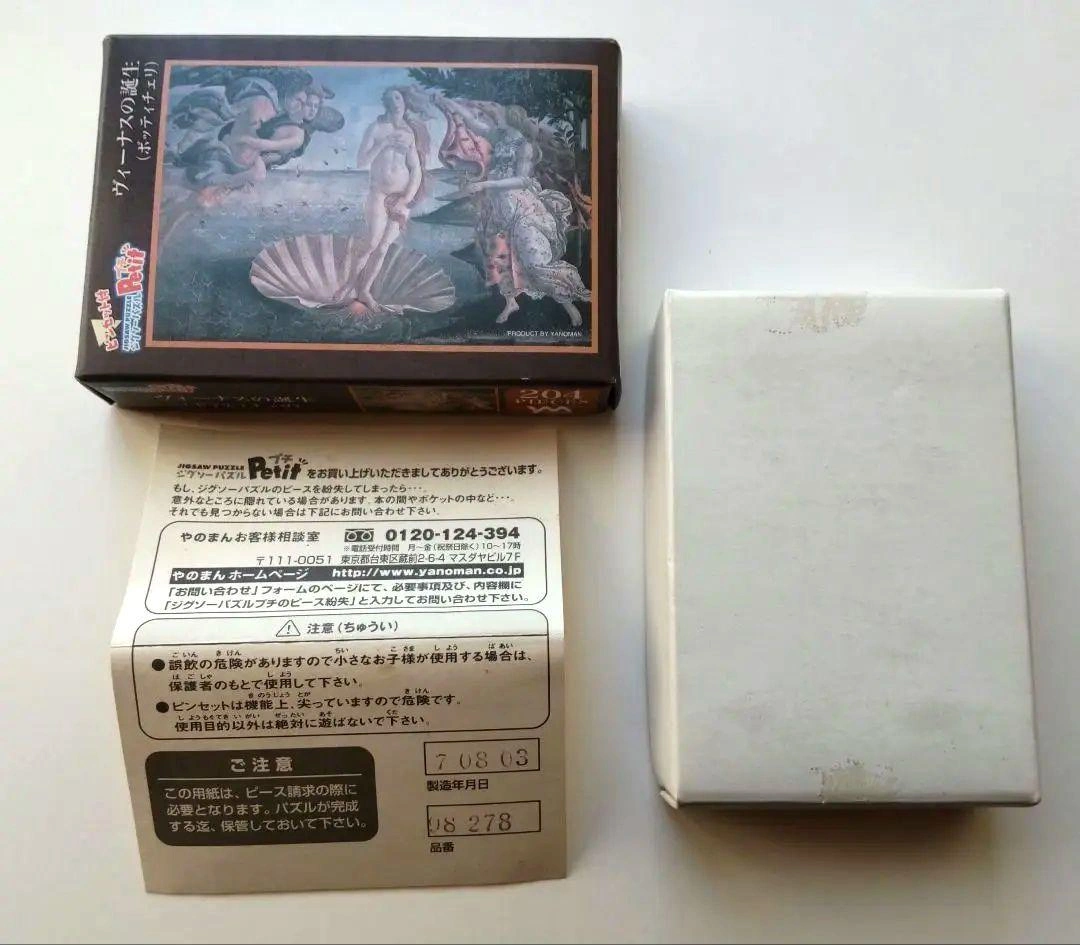 ボッティチェリの美術作品をテーマにした、ミニジグソーパズルです。 完成サイズ: 10✕14.7cm 204ピース ピースは全てあります。 小さいけれど楽しめると思います。 箱には焼けや劣化がありますが、ピースはきれいです。 種類...ジグソーパズル アクロスプラザまたは大口駅/ドン・キホーテ大口店でもお引渡し可能です。 ご希望の方はお気軽にご連絡ください。