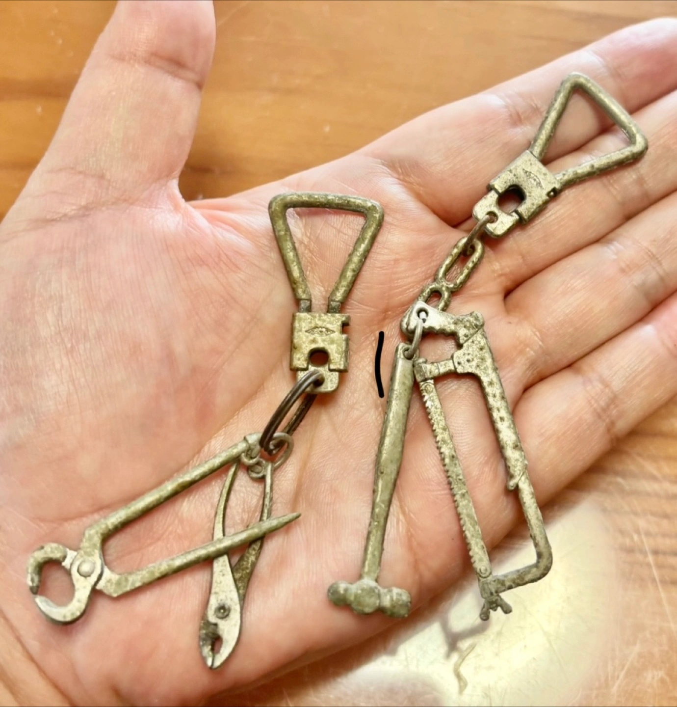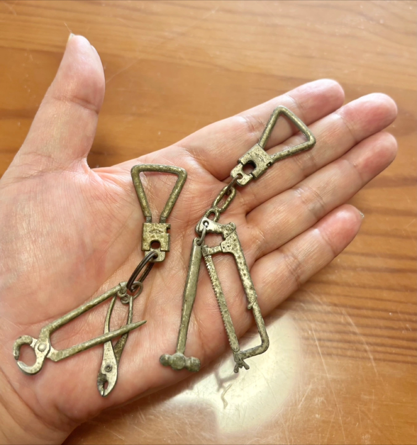 金属製の工具ミニチュアセット、手のひらサイズ。サビなど見られ状態はあまり良くありませんがアンティークみたいで小さくて可愛いです。 自宅保管品、中古品などご理解ある方にお譲りします。 - タイプ: ミニチュアツールセット - 素材: 金属製 - デザイン: 工具のミニチュア - サイズ: 手のひらサイズ ご覧いただきありがとうございます。 #キーホルダー #チャーム #工具 #ミニチュア #ドールハウス #スパナ #トンカチ #ノコギリ