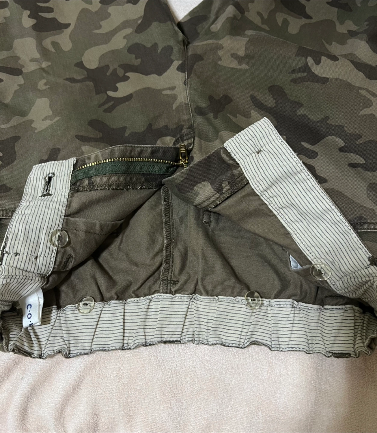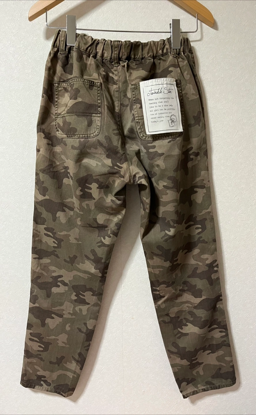古着の迷彩パンツです。 何歳まで着用できるか分からないので、サイズについては写真と詳細をすべて確認してください。 後ろウエストバンドは伸縮性があります。 男の子でも女の子でも着れると思います。 ブランド : COLZA パンツの長さ:91cm. 生地は柔らかくてざらざらしていません。 中古品であることをご理解の上、写真にてご判断の上ご購入をお願いいたします。返品はお受けできません。 ご質問がありましたらメッセージをお送りください。 よろしくお願いいたします。 武蔵小山駅、学芸駅、目黒駅のいずれかに集合してください。