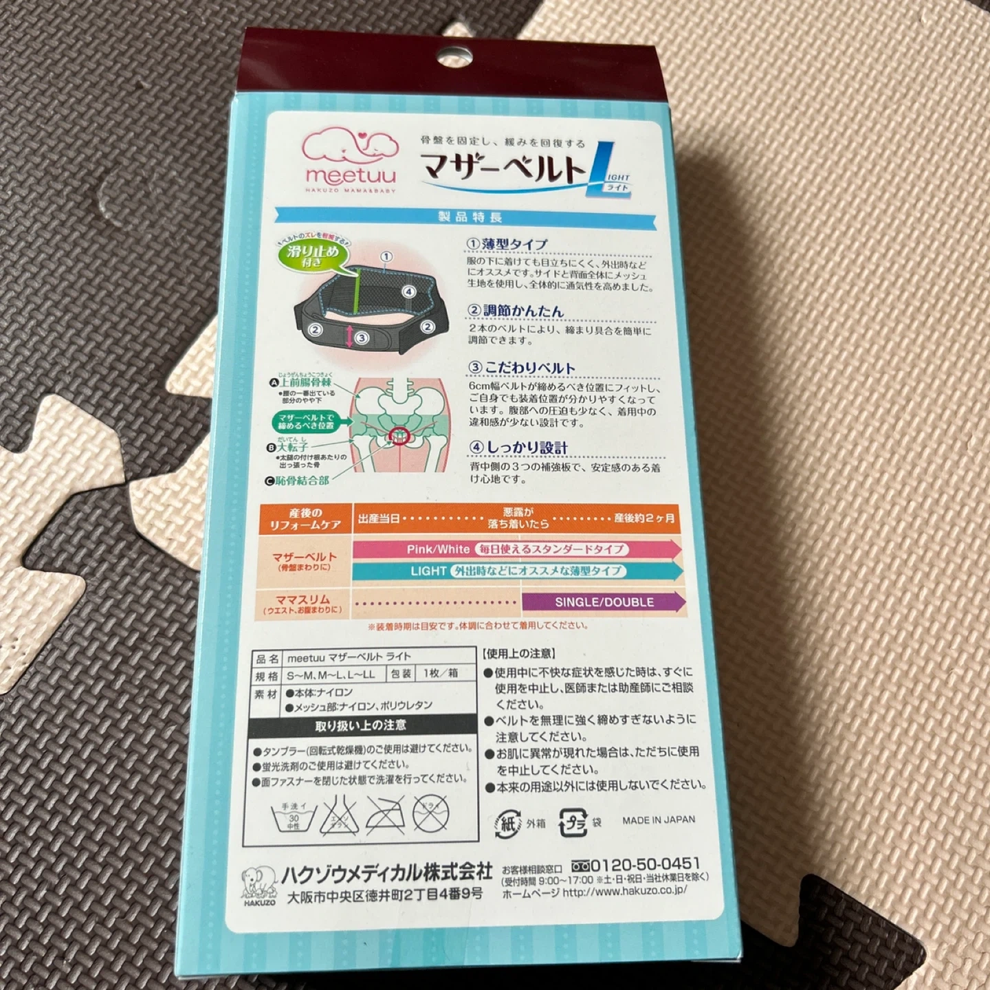 ミートゥーのマザーベルト ライトです。 【情報】 ブランド:ミートゥー 商品名:マザーベルト ライト サイズ:M〜L(適合ヒップサイズ 85cm〜105cm) カラー:ブラック 【状態】 未使用品です