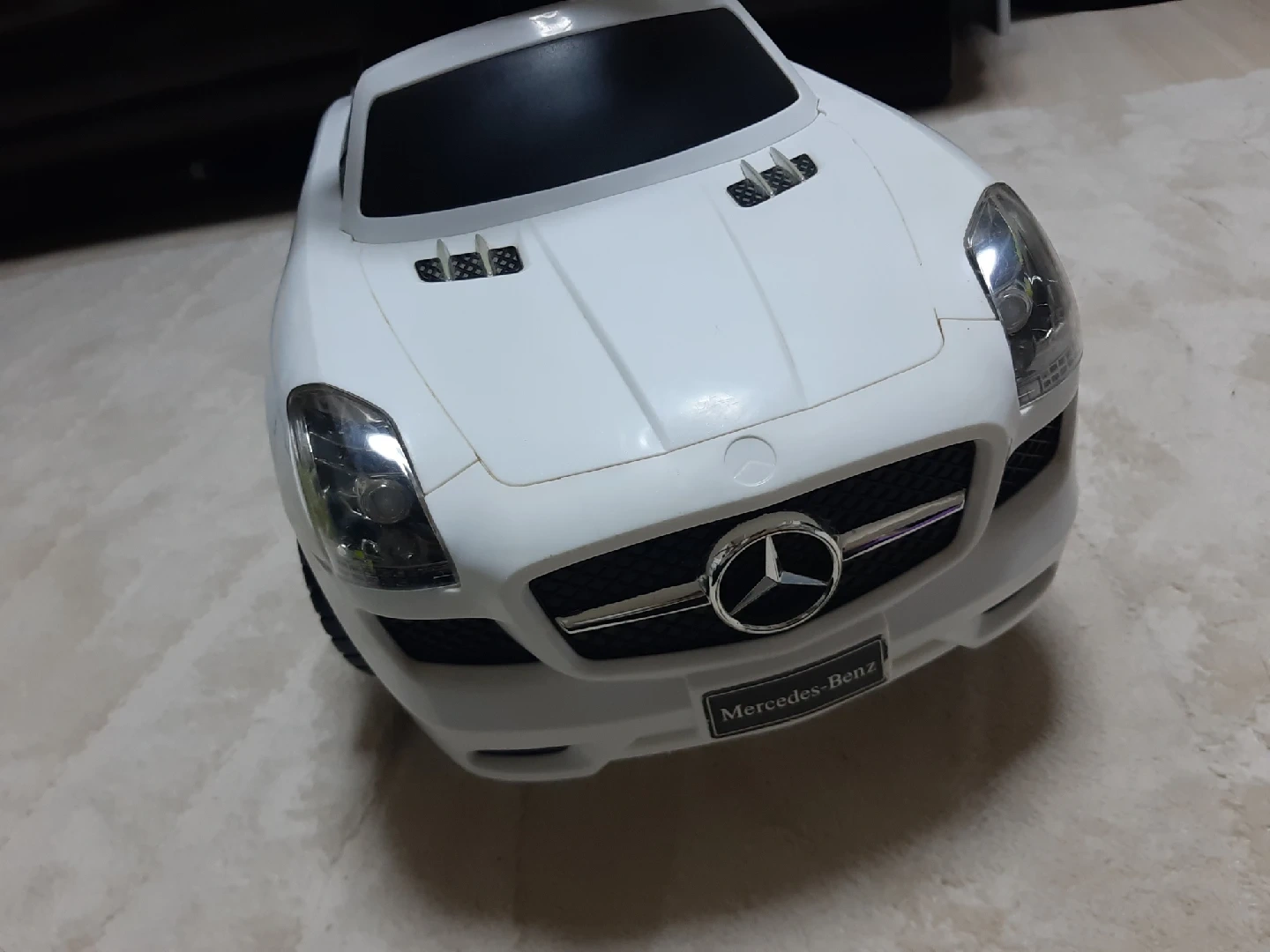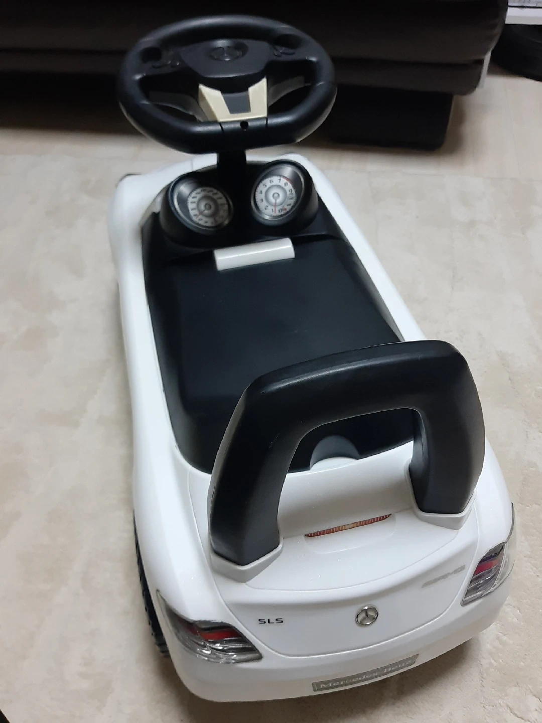 白メルセデスベンツSLSキッズカー 子供が乗って実際に動かせる車(ベンツ)の足蹴りおもちゃです。 室内で使ってました。 電池が切れており音の確認はできてませんが鳴らないかもしれないです。 椅子のふたを開けると小物が入れられます。 全体をアルコール除菌でふいてますが、子供が気に入って使っていた為小傷や汚れありますので中古を気になさらない方に。 引渡し希望日時:平日17時以降~or土日祝要問い合わせ ご希望日ありましたらお知らせください。 直接取りに来て頂ける方限定でお願いいたします。