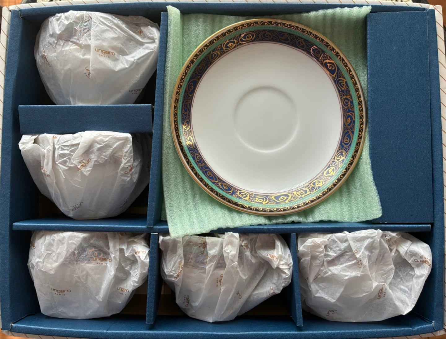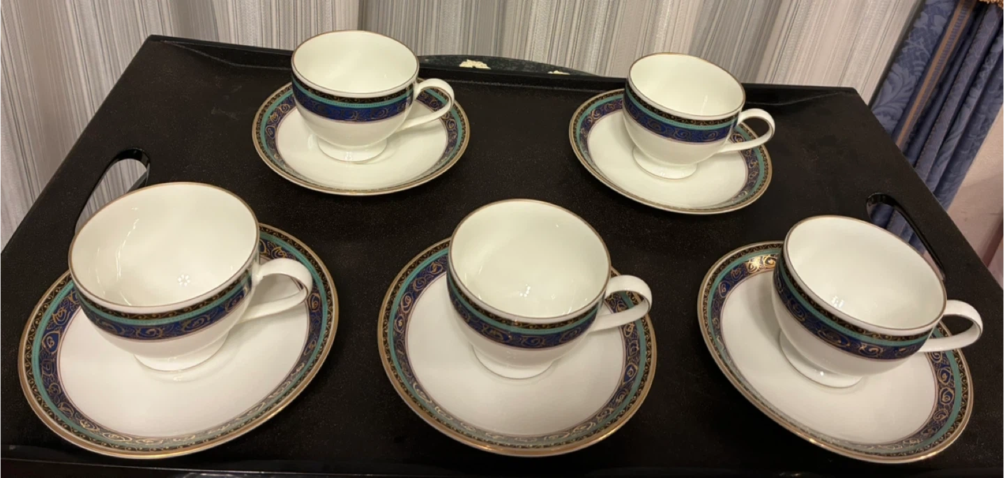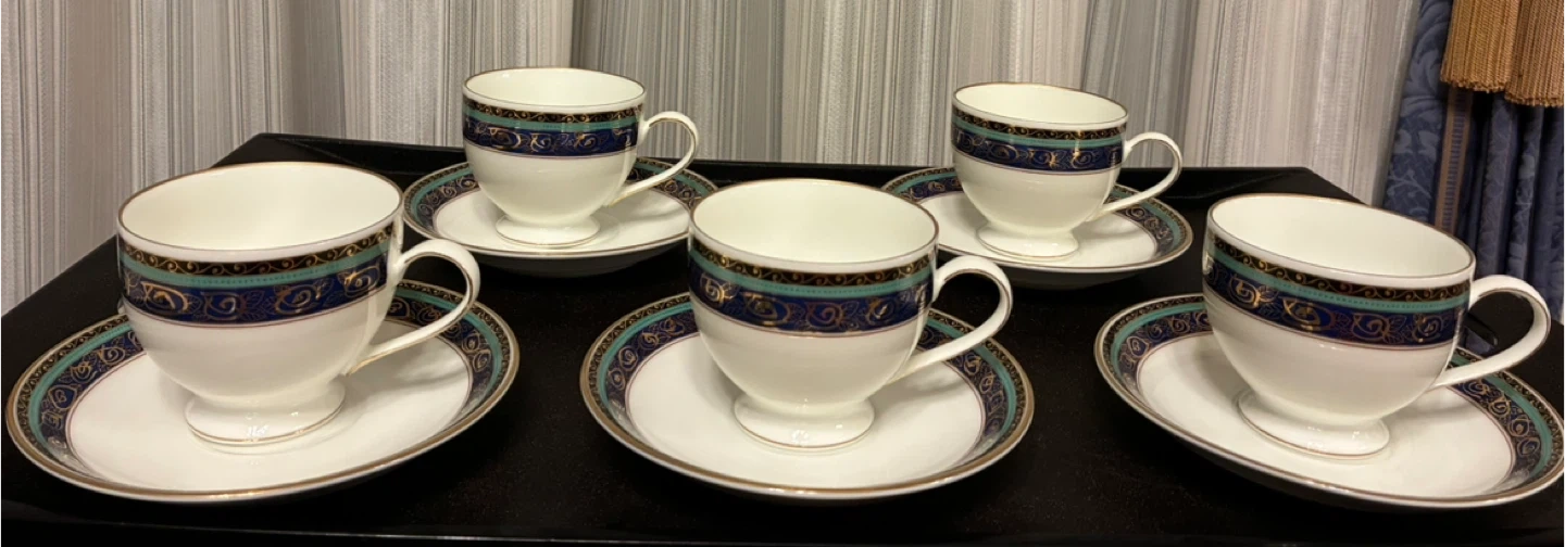 メープルのカップ&ソーサー5客セットです ・ブランド:maple romance & Ungaro Parisとのコラボ作品 (内包装紙にungaro paris と記されています!!) ・種類:カップ&ソーサー ・数量:5客 ・色:白、青、ゴールドの装飾 ・サイズ:カップ 口径8✖️高さ7cm ソーサー 口径4✖️高さ2cm ・状態:箱入り 未使用 美品‼️ 受渡し場所等、お気軽にご相談ください♪ どうぞ宜しくお願いいたします。
