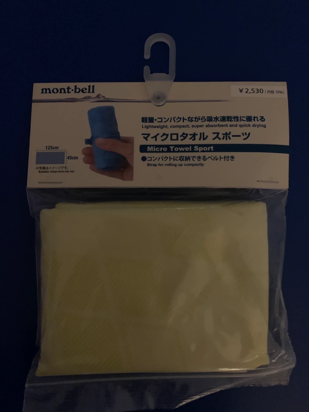 モンベルのマイクロタオルです ・サイズ:125cm×45cm ・カラー:イエロー ・状態:未使用 ・定価は2,530円でした
