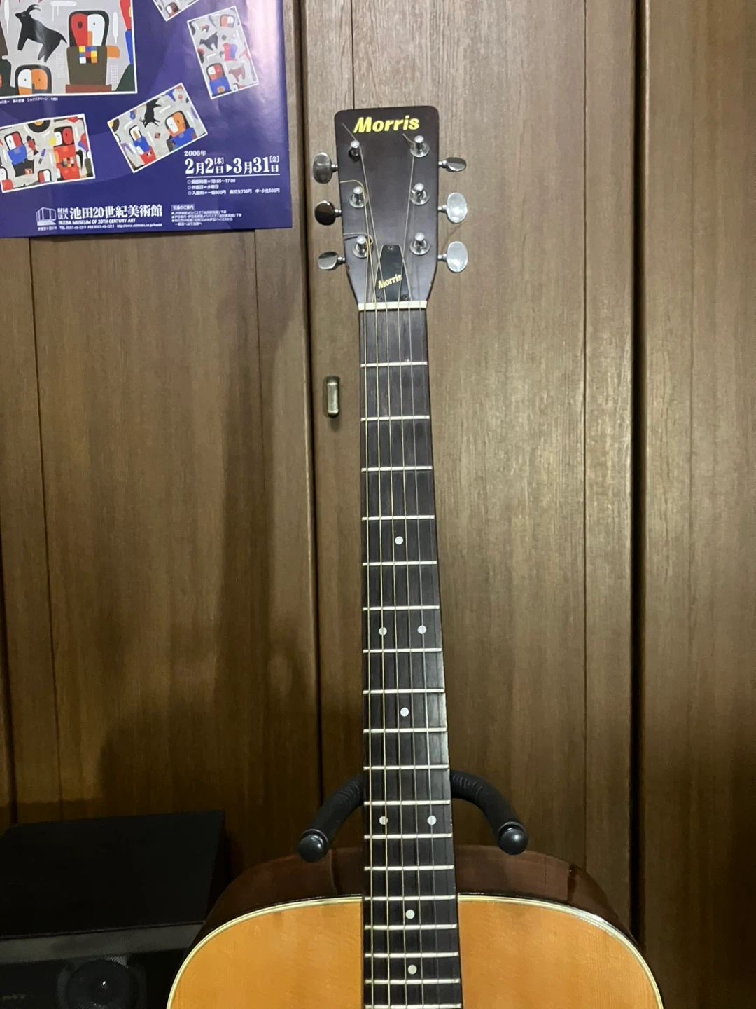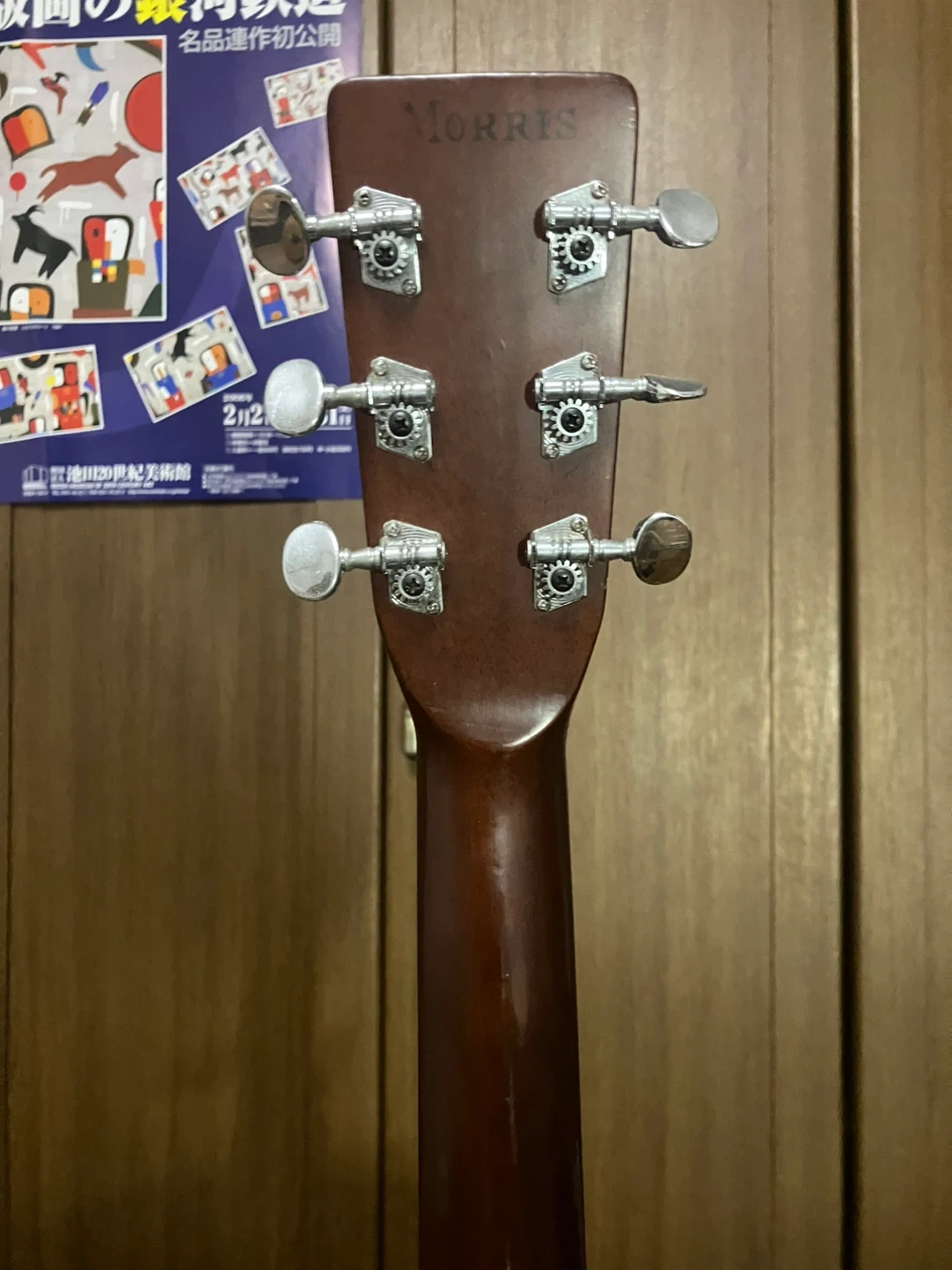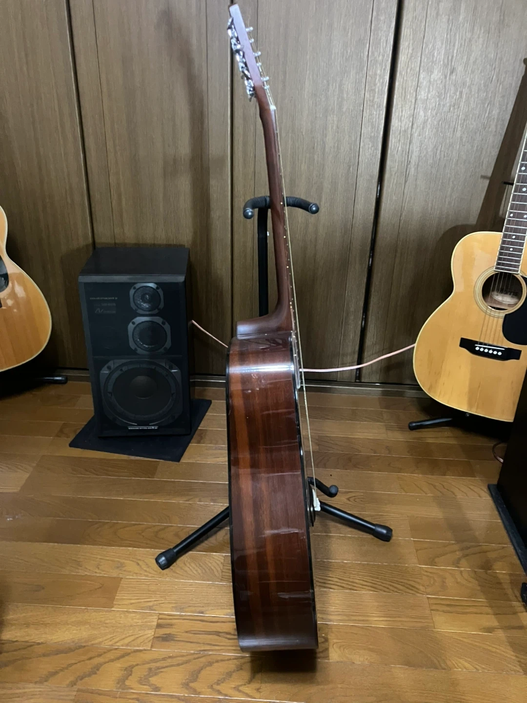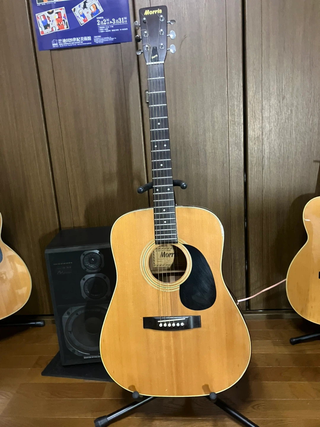 モーリスのアコースティックギター w 15 ・ブランド:モーリス ・色:木目調 ・ドレッドノートstyle 数あるギター工房の中からご覧いただきましてありがとうございます。 ラルクアコースティックギター工房と申します。 このモーリスW 15 は1975年製造の、ドレッドノートスタイル、カッタウェイ形状なしのアコースティックギターです。 ボディーはスプルースで、サイドとバックはトーグ材です。 指板はローズウッドで、ネックはナトーです。 製造から50年を経たヴィンテージギターで、木材もよく乾燥し、音量が伸びやかで、音質も大変良いギターに仕上がっています。 各素材に応じたクリーナーやワックスでクリーニングし、フレットやペグも磨き込んであります。 指板の脂質もオレンジオイルを使って除去してあります。 仕上げに2025年7月下旬にマーチンのエクストラライトゲージを貼って完成しています。 年代の割には傷も少なく、所有感を満足させてくれる1台となっています。 弾きやすさの目安となる。ナットのサイズは42ミリで、6弦12フレットの弦高が約3.5ミリと大変弾きやすいコンディションに仕上がっています。 キャンペーン期間中につき、10月19日までの間ギタースタンドをお付けいたしております。 またご希望であれば中古ですが、ギグバックを1000円にてご提供いたしております。 自宅近辺まで取りに来てくださる方限定でお願いいたします。 事前にご連絡をいただければ、曜日を問わず11時から18時の間お引き渡しができます。