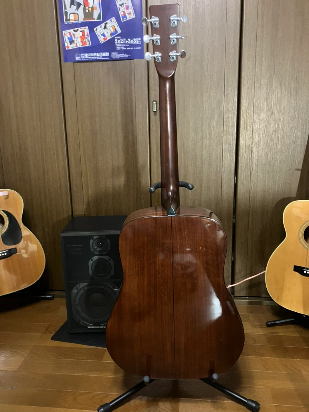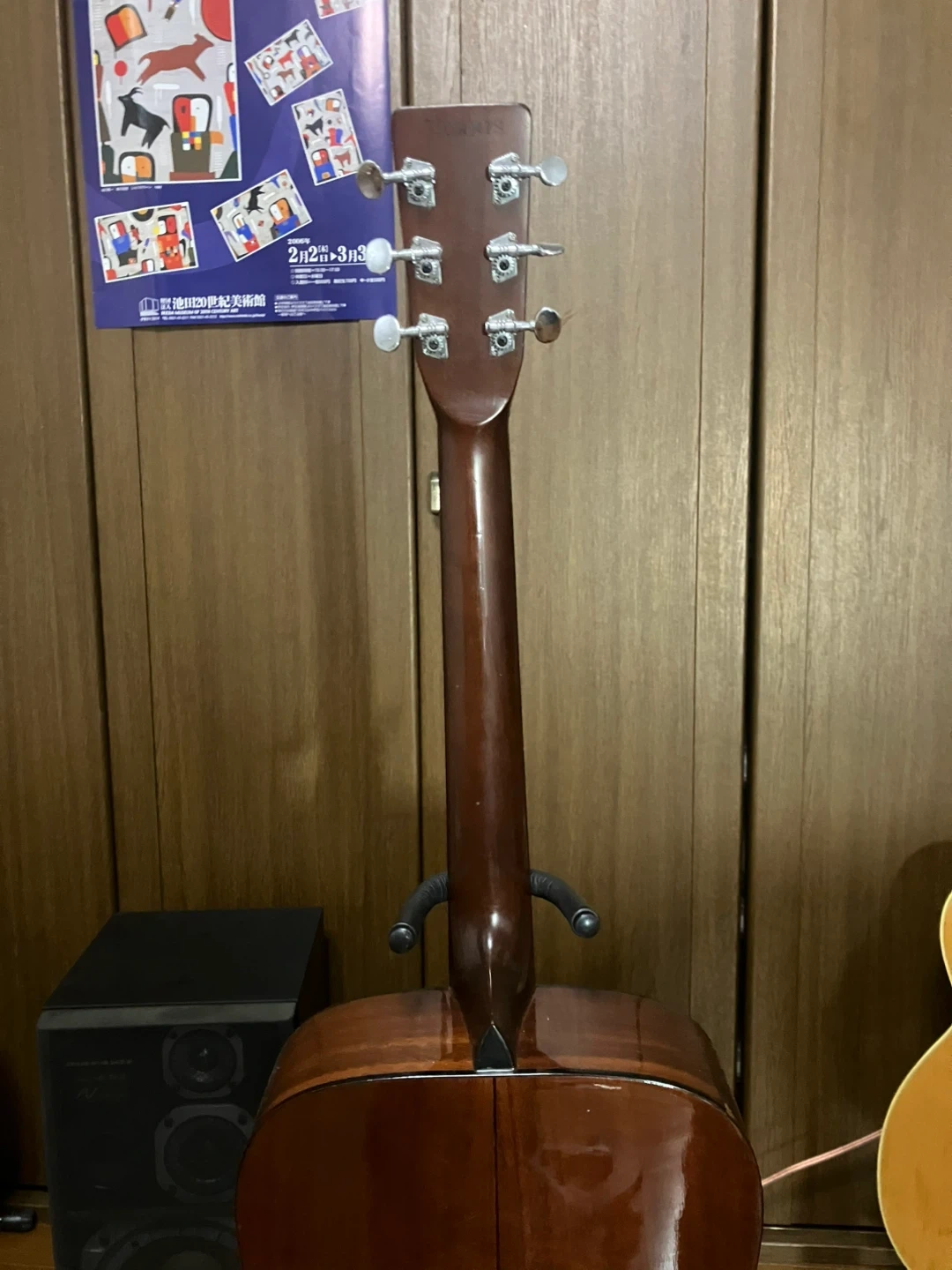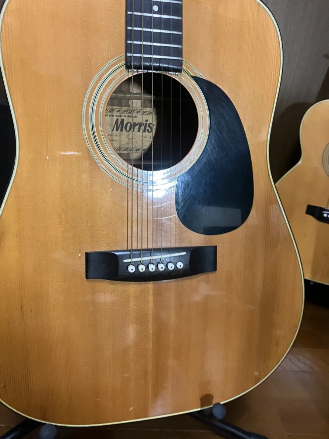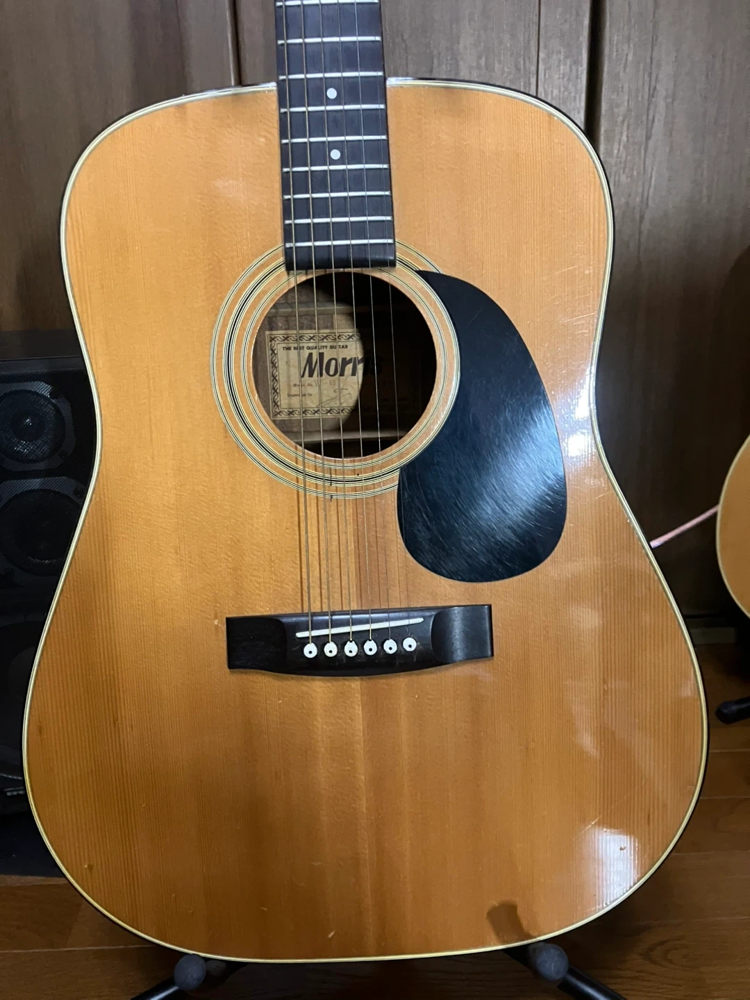 モーリスのアコースティックギター w 15 ・ブランド:モーリス ・色:木目調 ・ドレッドノートstyle 数あるギター工房の中からご覧いただきましてありがとうございます。 ラルクアコースティックギター工房と申します。 このモーリスW 15 は1975年製造の、ドレッドノートスタイル、カッタウェイ形状なしのアコースティックギターです。 ボディーはスプルースで、サイドとバックはトーグ材です。 指板はローズウッドで、ネックはナトーです。 製造から50年を経たヴィンテージギターで、木材もよく乾燥し、音量が伸びやかで、音質も大変良いギターに仕上がっています。 各素材に応じたクリーナーやワックスでクリーニングし、フレットやペグも磨き込んであります。 指板の脂質もオレンジオイルを使って除去してあります。 仕上げに2025年7月下旬にマーチンのエクストラライトゲージを貼って完成しています。 年代の割には傷も少なく、所有感を満足させてくれる1台となっています。 弾きやすさの目安となる。ナットのサイズは42ミリで、6弦12フレットの弦高が約3.5ミリと大変弾きやすいコンディションに仕上がっています。 キャンペーン期間中につき、10月19日までの間ギタースタンドをお付けいたしております。 またご希望であれば中古ですが、ギグバックを1000円にてご提供いたしております。 自宅近辺まで取りに来てくださる方限定でお願いいたします。 事前にご連絡をいただければ、曜日を問わず11時から18時の間お引き渡しができます。