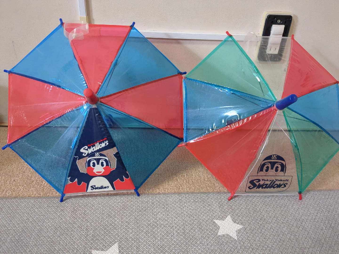 ヤクルトスワローズのグッズまとめ売りです ・傘グリーン系2点、小2点1本ちょっと曲がってますがさせます ・ユニフォーム FREEサイズ2枚 ・応援グッズ折畳ヒップシート1点 •YSキャ ップ 中古品であることご了承ください 8年程前に購入1~2度応援で使用した後クリーニングして自宅保管していました