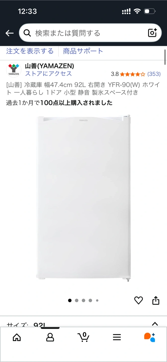 ヤマゼンの冷蔵庫です 【情報】 ブランド:ヤマゼン 型番:YFR-90(W) 容量:92L 【状態】 使用感少なめ、全体的にきれいです 1年前に購入し、入れたものは水だけです 中古品であることご了承ください 自宅まで受け取りに来てください
