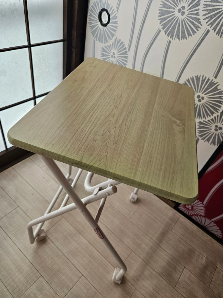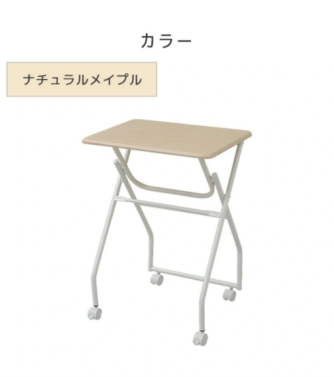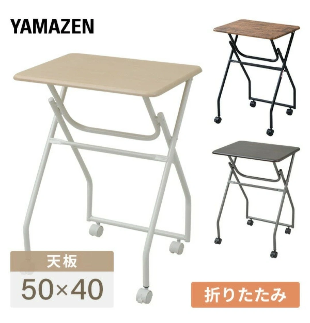 ヤマゼンの折りたたみテーブルです 【状態】 中古品であることご了承ください 【情報】 ブランド:ヤマゼン サイズ:幅50×奥行44×高さ71cm  重量:5kg材質本体:スチール (粉体塗装) カラー:ナチュラルメイプル 天板:合成樹脂化粧繊維板(塩化ビニル樹脂●原産国:中国 ●一部取付品です商品説明 ●キャスター付で移動も楽なサイドテーブル ●折りたたみ時:幅25 奥行50 高さ79cm ●天板サイズ:幅50 奥行40cm ●天板耐荷重:3kg