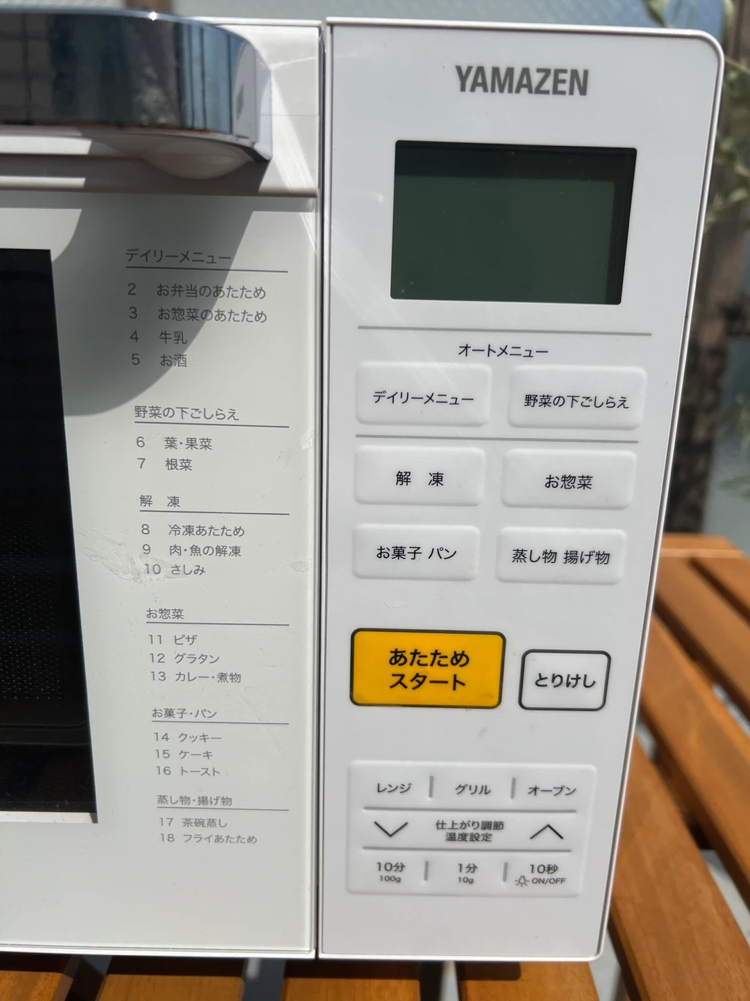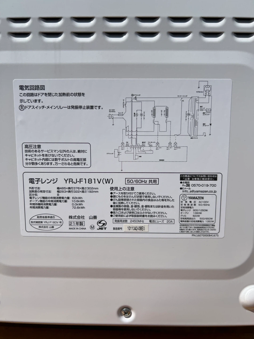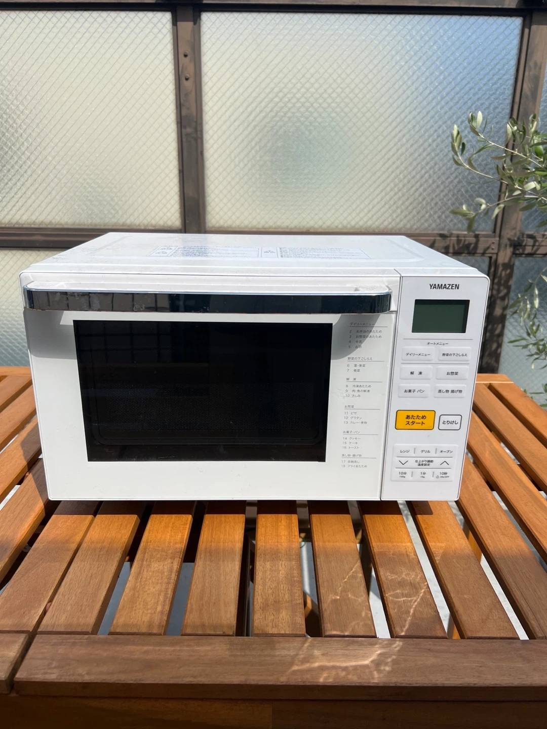 普通の電子レンジです。 レンジ、グリル、オーブンの機能があります。 引越しのため出品します。 【情報】 ブランド:ヤマゼン 型番:YRJ-F181V(W) 年式:21年製 色:ホワイト サイズ:幅485×奥行376×高さ302mm 【状態】 使用感少なめ 中古品であることご了承ください。 動作確認済み 庫内が冷めるまでファンがまわることがありますが、しばらくすると止まります。