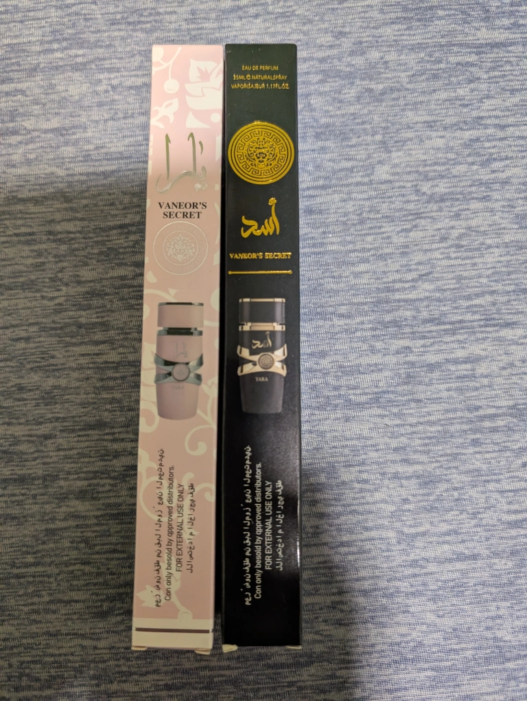 VANEOR'S SECRETのヤラとアサドの 香水2本セットです。 ・ブランド:VANEOR'S SECRET ・容量:35ml ・種類:EAU DE PARFUM (オードパルファム) ・香り:YARA (ピンク), ASAD (ブラック) ・状態:残量9割 お試しにいかがでしょうか。 中古品であることご了承ください