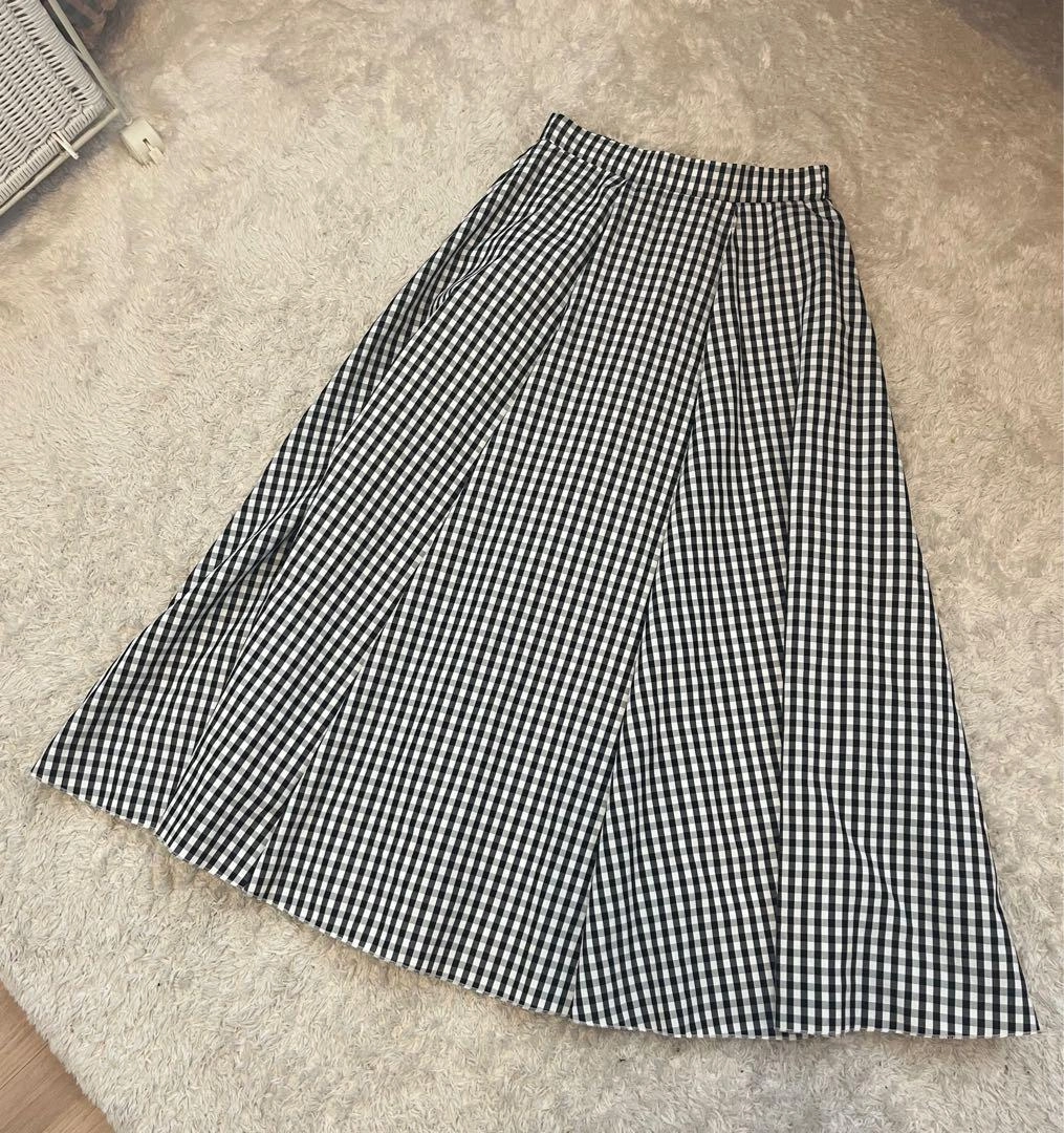 ◆ユアーズ ◆ギンガムチェックスカートM◆ ユアーズのギンガムチェックのロングスカートです。 着用回数は5回ほどです。 オールシーズン着用できてとても可愛いです☆ とくに撥水加工ではないかと思いますが、水を弾きやすい素材なので雨の日でも履きやすいです☆ 《サイトより》 ギンガムチェック柄が目を引くボリュームフレアロングスカート。 ・大柄すぎないチェック柄で、いつものコーディネートに華やかさをプラスしてくれます。 ・ウエストゴムで楽な穿き心地も嬉しいポイント。 ・歩くたびにふわっと綺麗に広がるボリューム感のあるシルエットも魅力の一枚。 ※この製品は素材感と雰囲気を重視し、柔らかい風合いの生地を使用しています。激しい運動や強度な力が加われば縫い目が開いたり、目寄れ(織り糸の滑り目が開く)する性質をもっています。この点をご留意の上ご着用下さい。 ◆サイズ:※単位(約cm) 【M】総丈:90、ウエスト:66-90、裾幅:218 柄...チェック 季節...オールシーズン カラー···ブラック ご希望の方はお気軽にご連絡ください。
