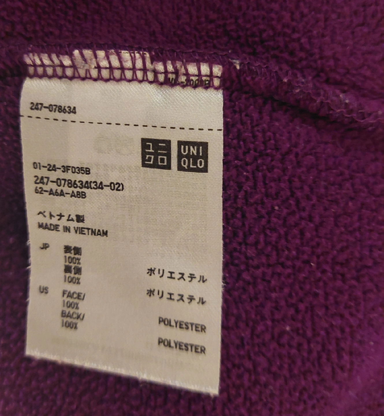 ユニクロ フリースジャケット 紫 Lサイズ
