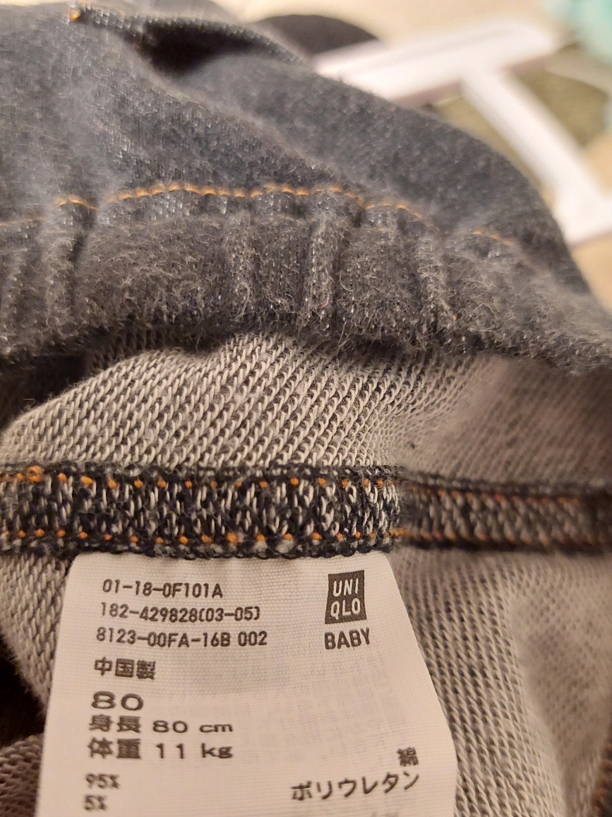 ユニクロのベビーパンツズボン👖です ・ブランド:ユニクロ ・サイズ:80cm ・カラー:デニム風ブラック ・状態:使用感あり サイズアウトしたので出品しました。 自宅保管してます。 中古品なのでご理解ください。 気になる方はご遠慮ください。 受渡し後のクレームはご遠慮ください。 支払いは現金のみでお願いいたします。 申し訳ないですが夜は受渡しできません。 受け渡し場所は白幡池公園、白楽駅、大口公園、白幡地区センター、白幡仲町公園、仲手原のセブンイレブンでも可能です。 よろしくお願いいたします。