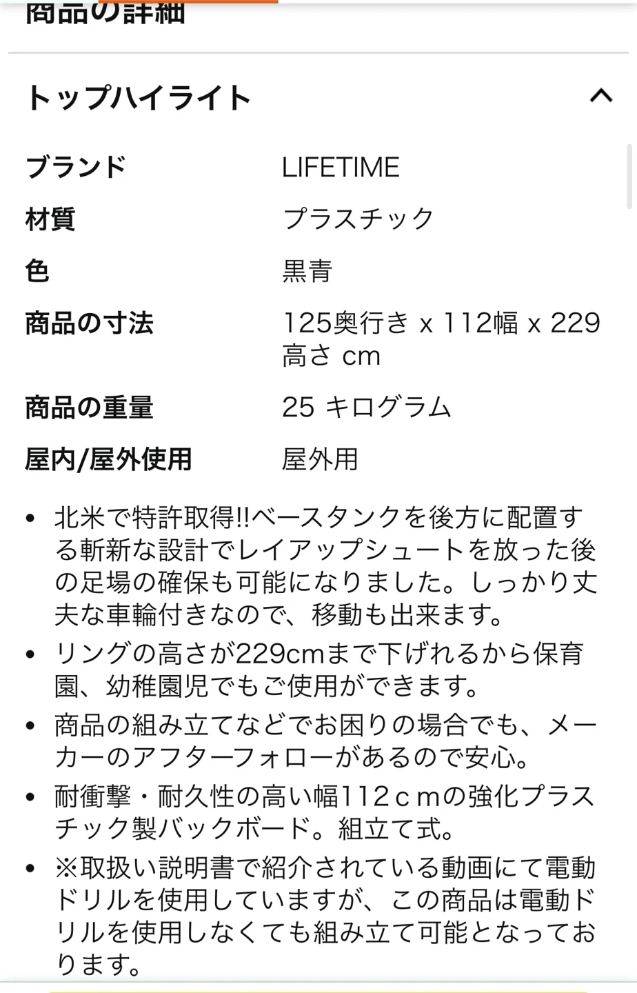 ライフタイムのバスケットゴールです 2年前に購入しましたが、使用しないので出品します。 【情報】 ブランド:ライフタイム 素材:プラスチック 色:黒青 商品の寸法:125cm(奥行) x 112cm(幅) x 229cm(高さ) 商品の重量:25キログラム 屋内/屋外使用:屋外用 【状態】 屋外に2年間置いていたので相応の汚れ、傷ありますが、使用には全く問題ありません。 中古品であることご了承ください