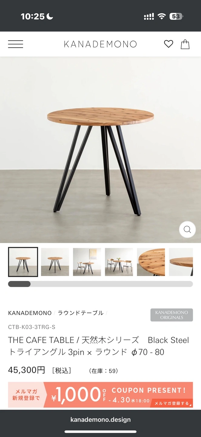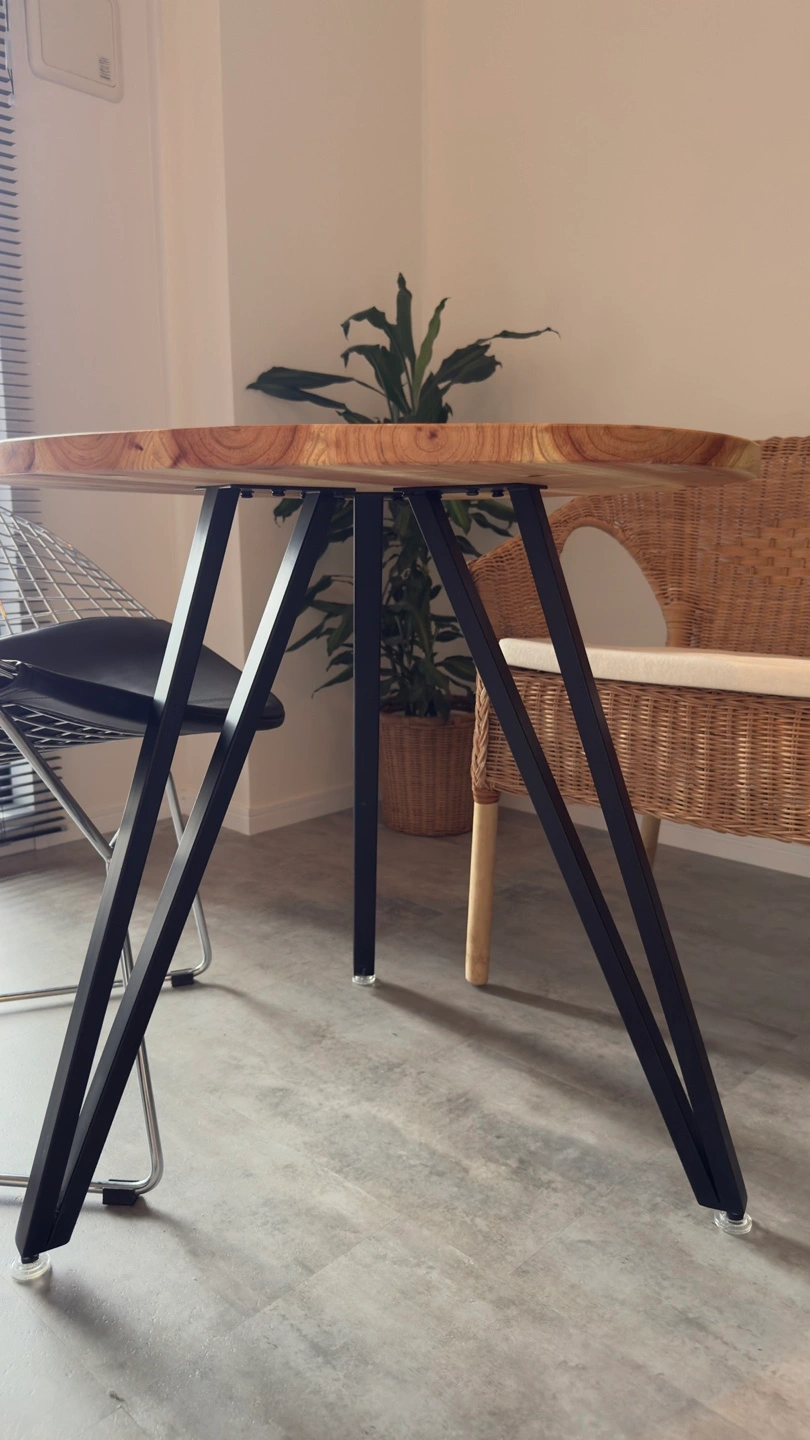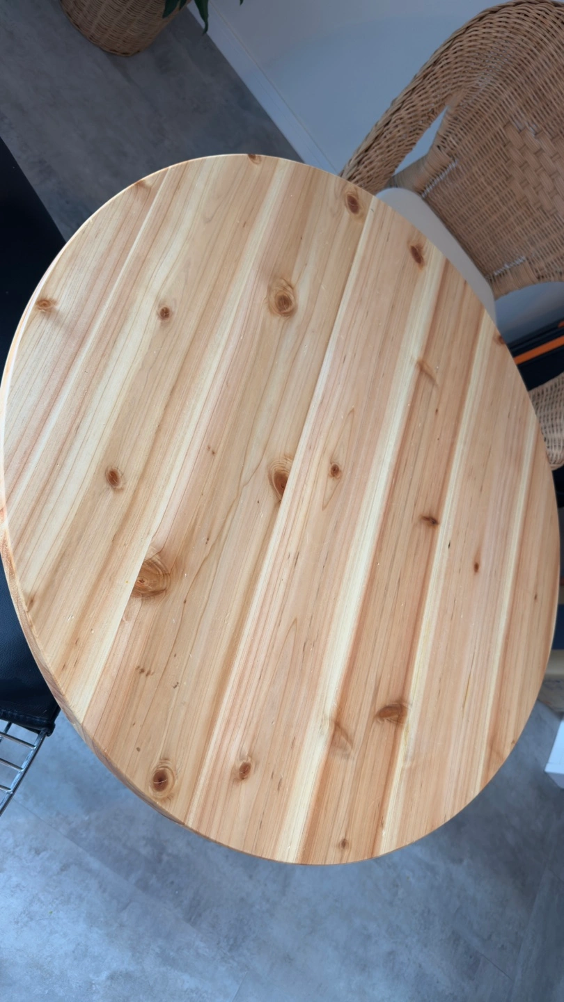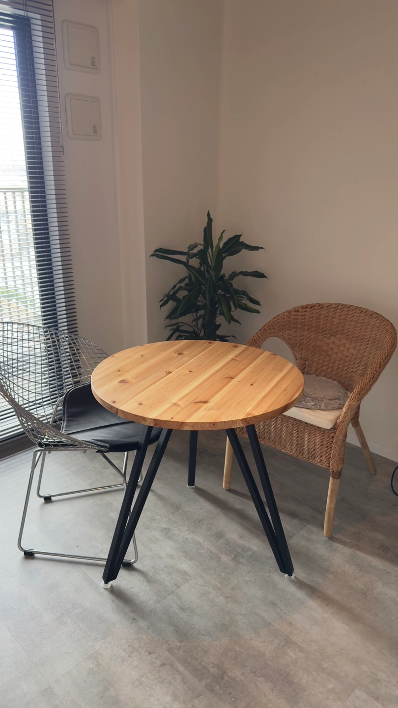 ラウンドテーブルと椅子二脚のセットです。 バラ売りも可能です。 取引場所 中目黒駅周辺 kanademono オーダーメイドラウンドテーブル 25,000円 ステンレスメッシュの椅子 15,000円 IKEAラタンチェア 3,000円 定価だと合計で90.000円ほどします。 2年ほど前にオーダーメードで作成しました。 使用頻度下がったため出品です。 テーブルの直径は72cmで圧迫感もなく、カフェテーブルとしてなかなかないベストなサイズかと思います。 2人で使用できるサイズです。 天板は人気ある杉無垢になっております。 使用による多少の傷はございます。 このデーブル一つで空間がおしゃれになります。