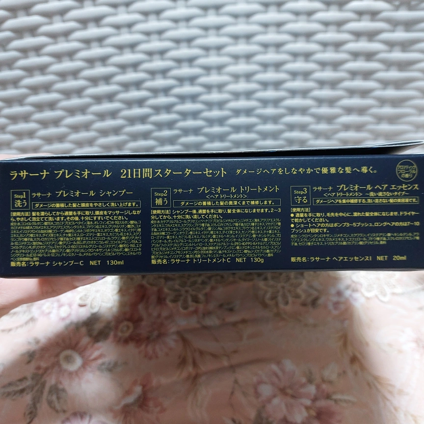 ラサーナ Premior 21日スターターセット ・セット内容:  シャンプー、トリートメント、エッセンス ・シャンプー容量: 130ml ・トリートメント容量: 130g ・エッセンス容量: 20ml ・ブランド名: Premior ・香り:アロマティックフローラル 新品未使用ですが箱に傷みがあります。 写真でご確認お願いします。