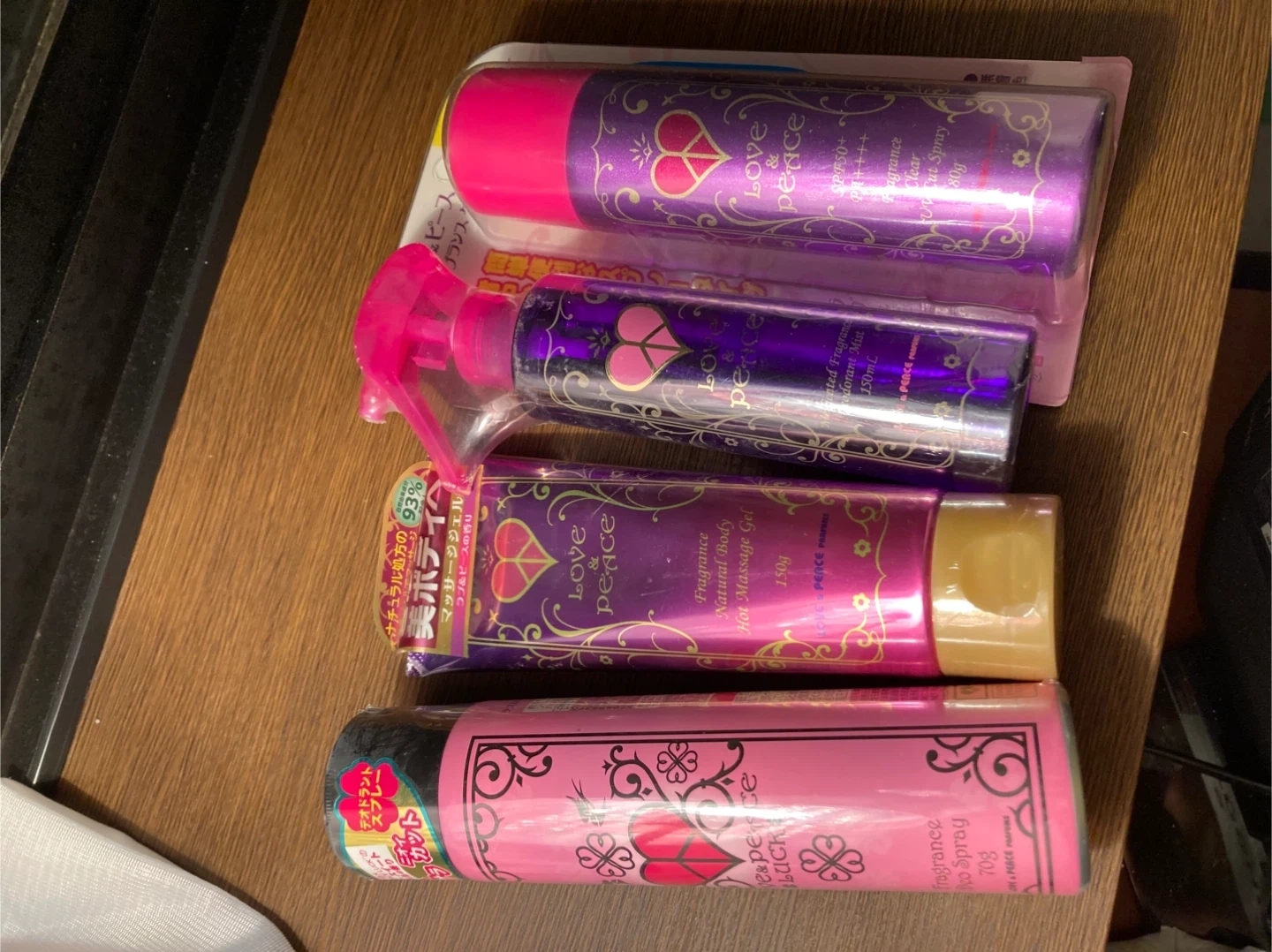 ラブアンドピースの香水セットです ・香水の種類:ボディスプレー、マッサージジェル、デオドラントミスト ・サイズ:80g, 150g, 70g, 150ml ・状態:使用感少なめ 中古品であることご了承ください ※1つ 800円で 個数に応じて ご相談下さい☆彡