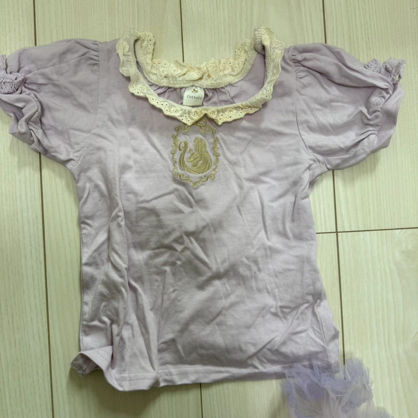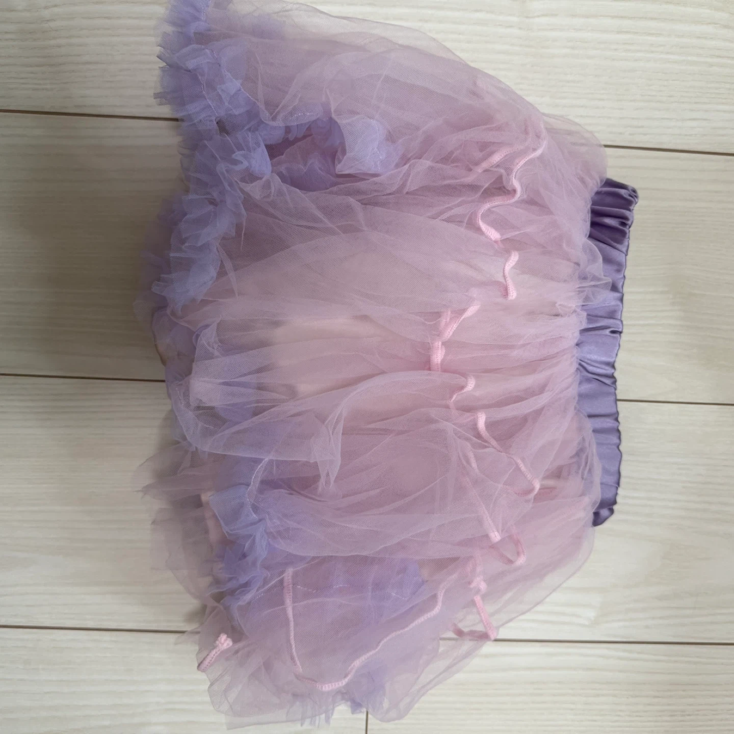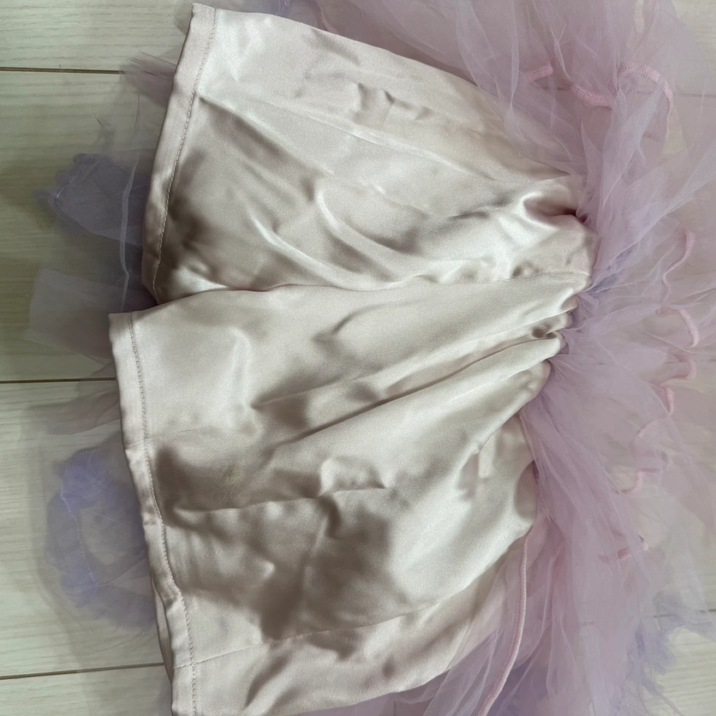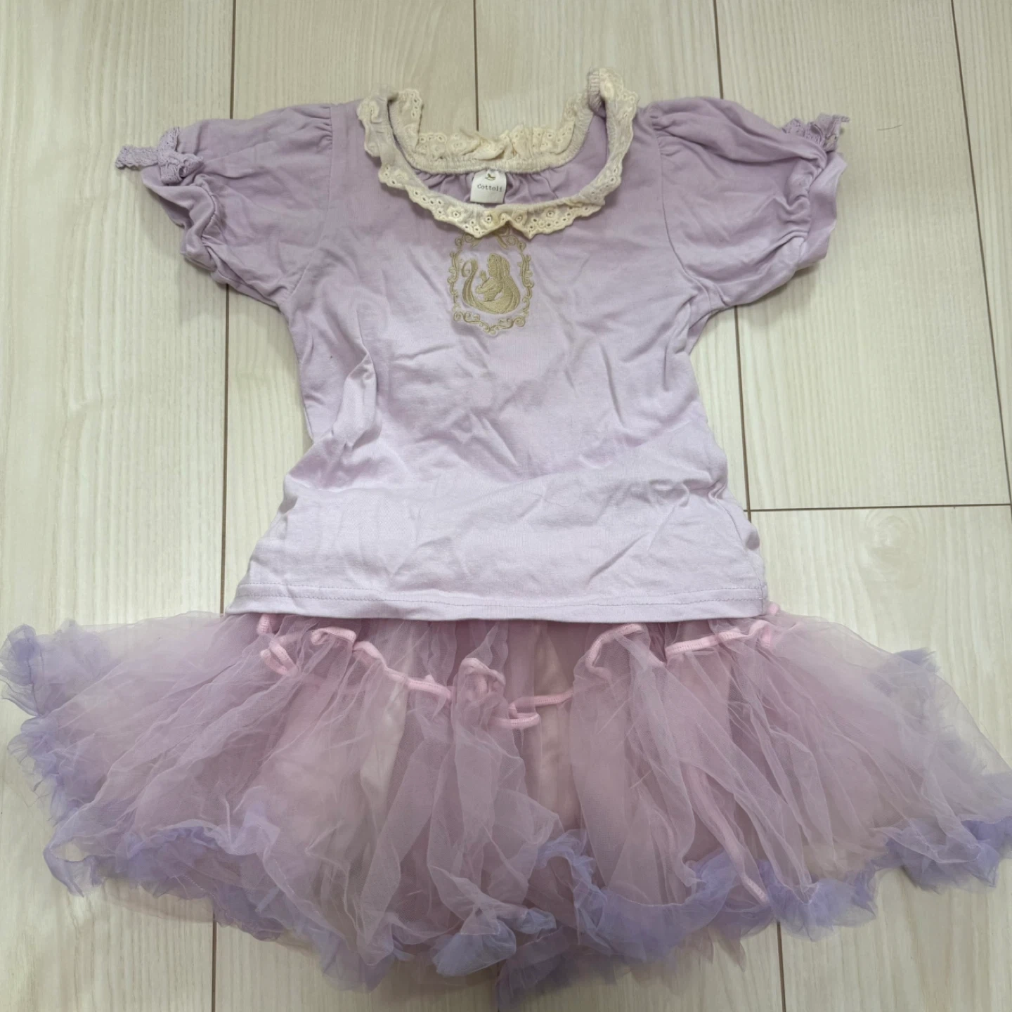 チュールスカート(中はショートパンツ)は 写真撮影のみ 着たがった時にはサイズアウト ふりふりお姫様みたいでとっても可愛い! トップスはお食事に行って エリレースに少しシミあり シミ取りしてないので 部分的にオキシなどで取れるかもです