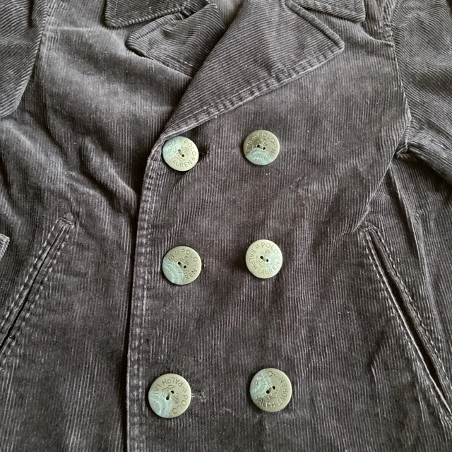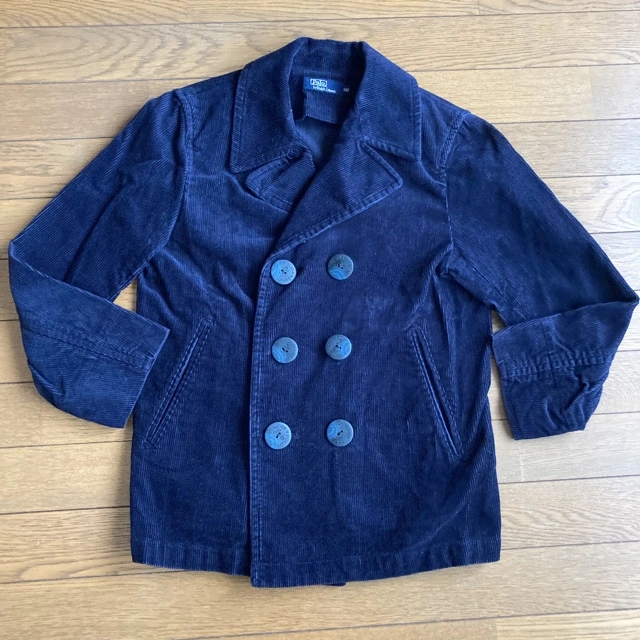 15年ほど前に百貨店で購入したPolo by Ralph Lauren(ラルフローレン)のピーコートです。 車で外出した際、外を歩くときに20分ほど着たことがあるのですが、それ以外は着る機会がなくしまったままになっておりました。 サイズは140、素材は綿100%のコーデュロイ、お色は濃紺です。 画像では色褪せて見えますが、畝のあるコーデュロイの特性のためで、実際はきれいな紺色です。 カバーをかけてはいたのですが、クローゼットに長期保管しておりましたので、たたみじわのようなものや多少畝が擦れている箇所もございます。 大変美品だと思いますが、長期保管品のためお安くお譲りいたしますので、USED品であることにご理解をいただける方にご活用いただけましたら嬉しいです。 駅改札」コンビニ駐車場などでのお渡し希望です。