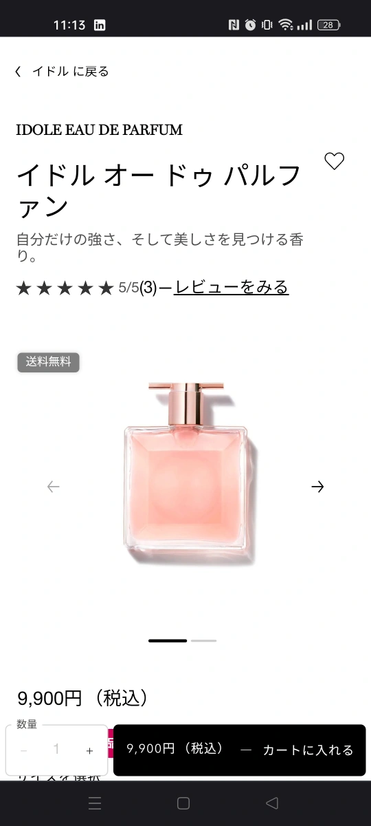 (English follows) ランコム イドル オードパルファン (25ml) ランコムのイドル オードパルファン(25ml)を出品します。2回だけスプレーしただけなので、ほぼ新品同様です!元の箱はございませんので、ご注意ください。購入価格は9,900円でしたが、6,000円でお譲りします。高級フレグランスをお得に手に入れるチャンスです! Lancôme Idôle Eau de Parfum (25 ml) I'm selling a 25 ml bottle of Lancôme Idôle Eau de Parfum. It has been sprayed only twice, so it’s almost brand new! Please note that the original packaging is not included. I purchased it for ¥9,900, and I'm offering it for ¥6,000. It's a fantastic deal for a luxury fragrance!