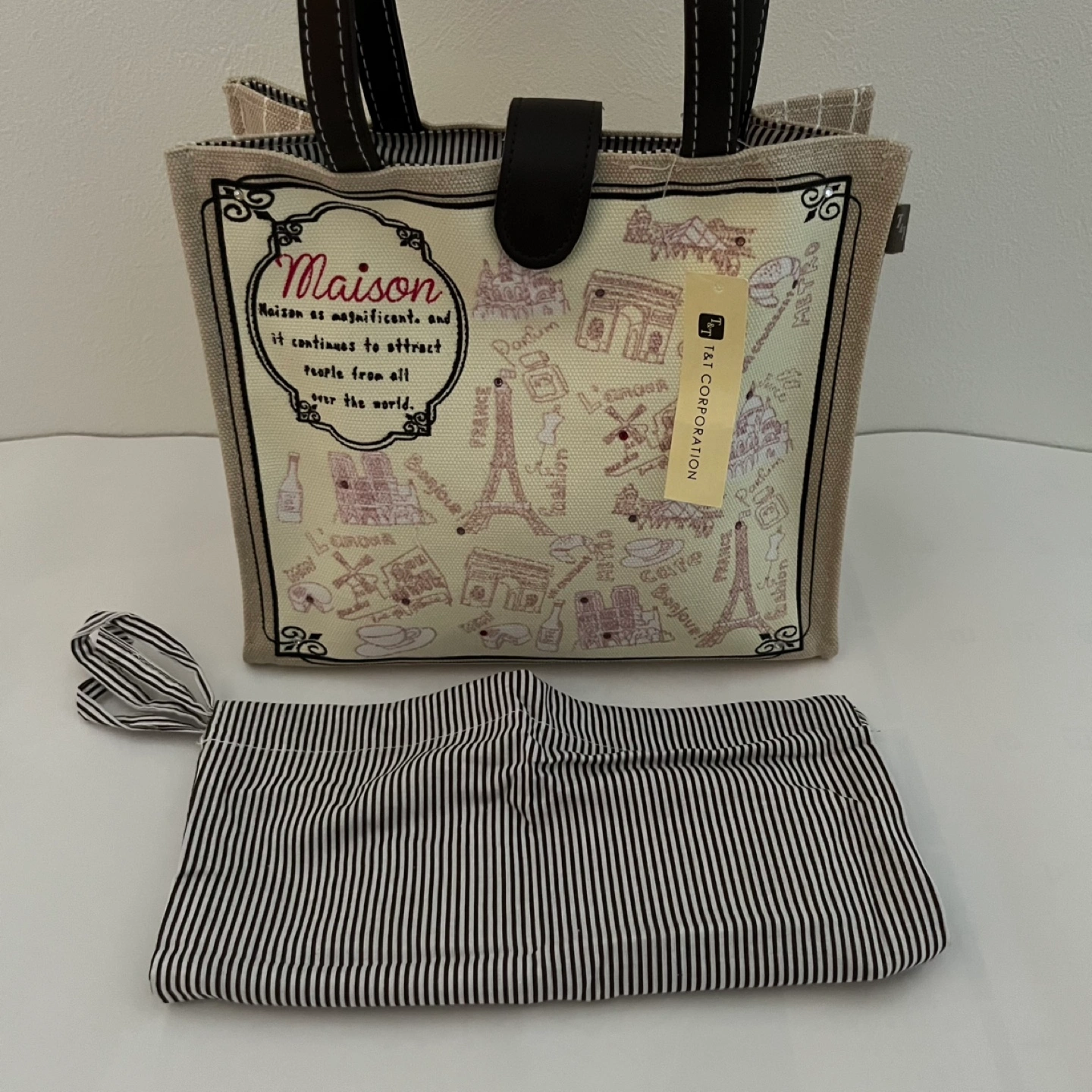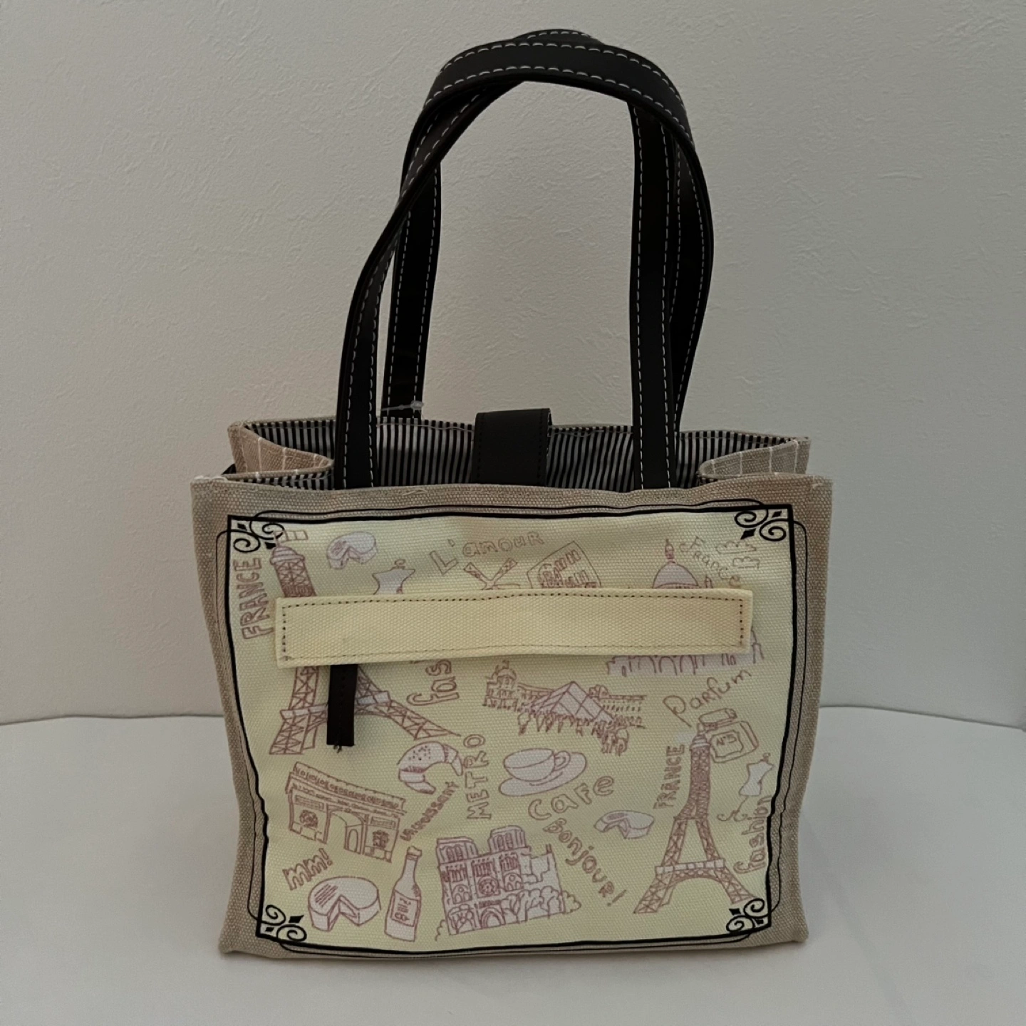 あたたかさ内袋付き、保冷タイプのランチトートバッグ。 本体生地は厚手です。 大きさ:幅23 高さ20 マチ10.5cm 素材:綿100% バッグの外側にファスナー付きのポケット、内側にもポケットがあります。 新品未使用(タグ付き)ですが、自宅でしばらく保管していたものです。 #キャロットで新生活