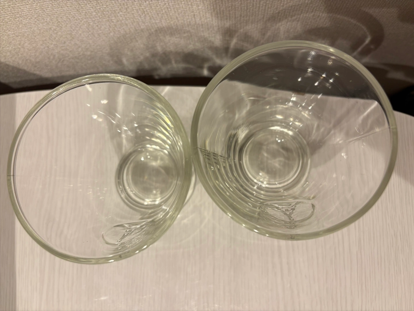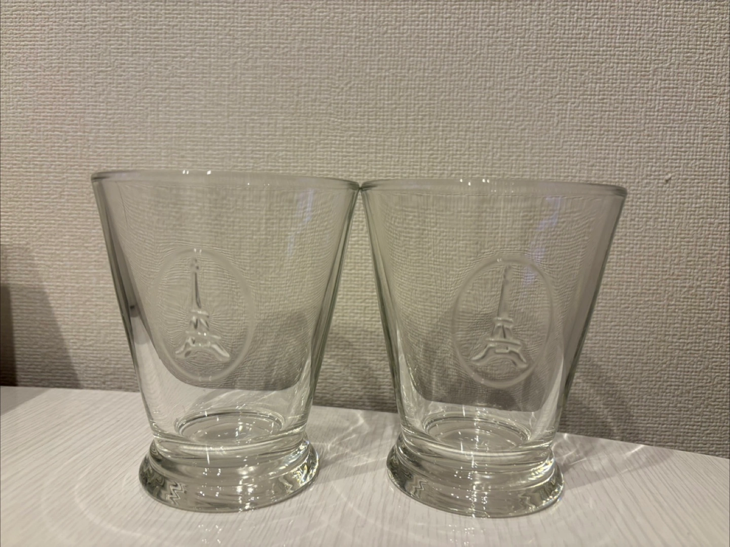 La Rochère(ラ・ロシェール) トゥール エッフェル タンブラー 2個セット フランスの老舗ガラスメーカー「La Rochère(ラ・ロシェール)」による、エッフェル塔の型押しが特徴の「トゥール エッフェル」シリーズのタンブラーです。 プレス成形で作られており、厚みがあってとても丈夫。実際にフランスのカフェやレストランでも使われている実用性の高いグラスです。 【商品詳細】 ・サイズ:直径約8.5cm × 高さ約10.5cm ・容量:約260ml ・素材:ガラス ・製造国:フランス ・セット内容:2個 【状態】 目立つキズや汚れはありません。全体的にきれいな状態です。 ※あくまで中古品のため、細かなスレなど気にな る方はご遠慮ください。