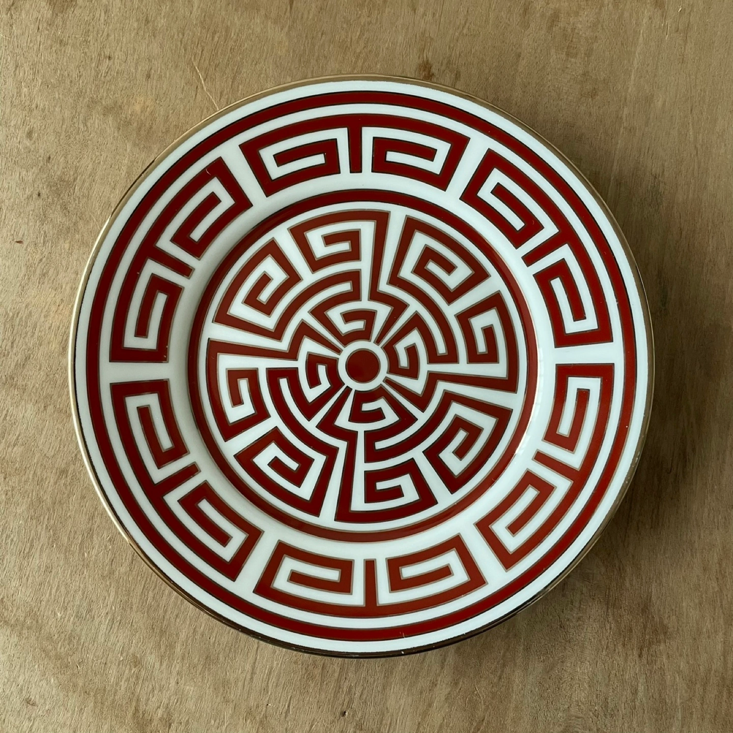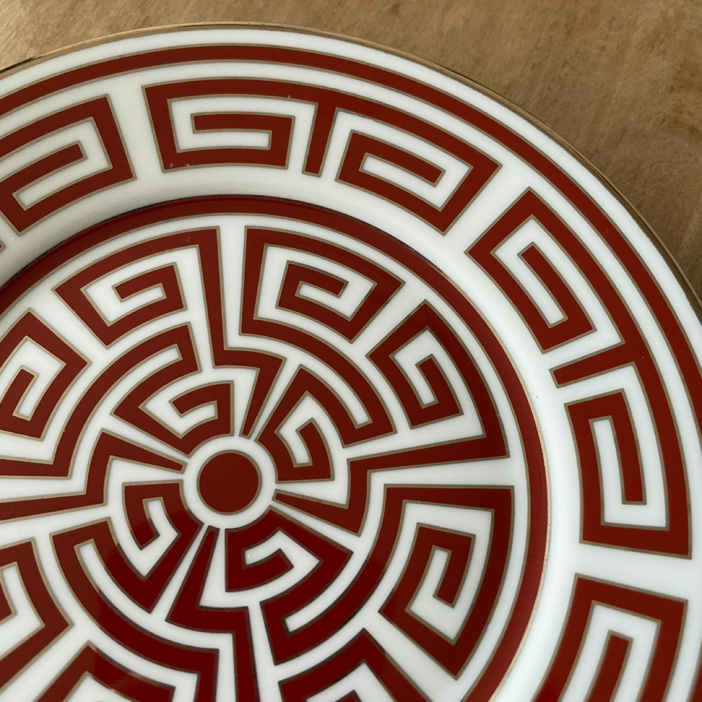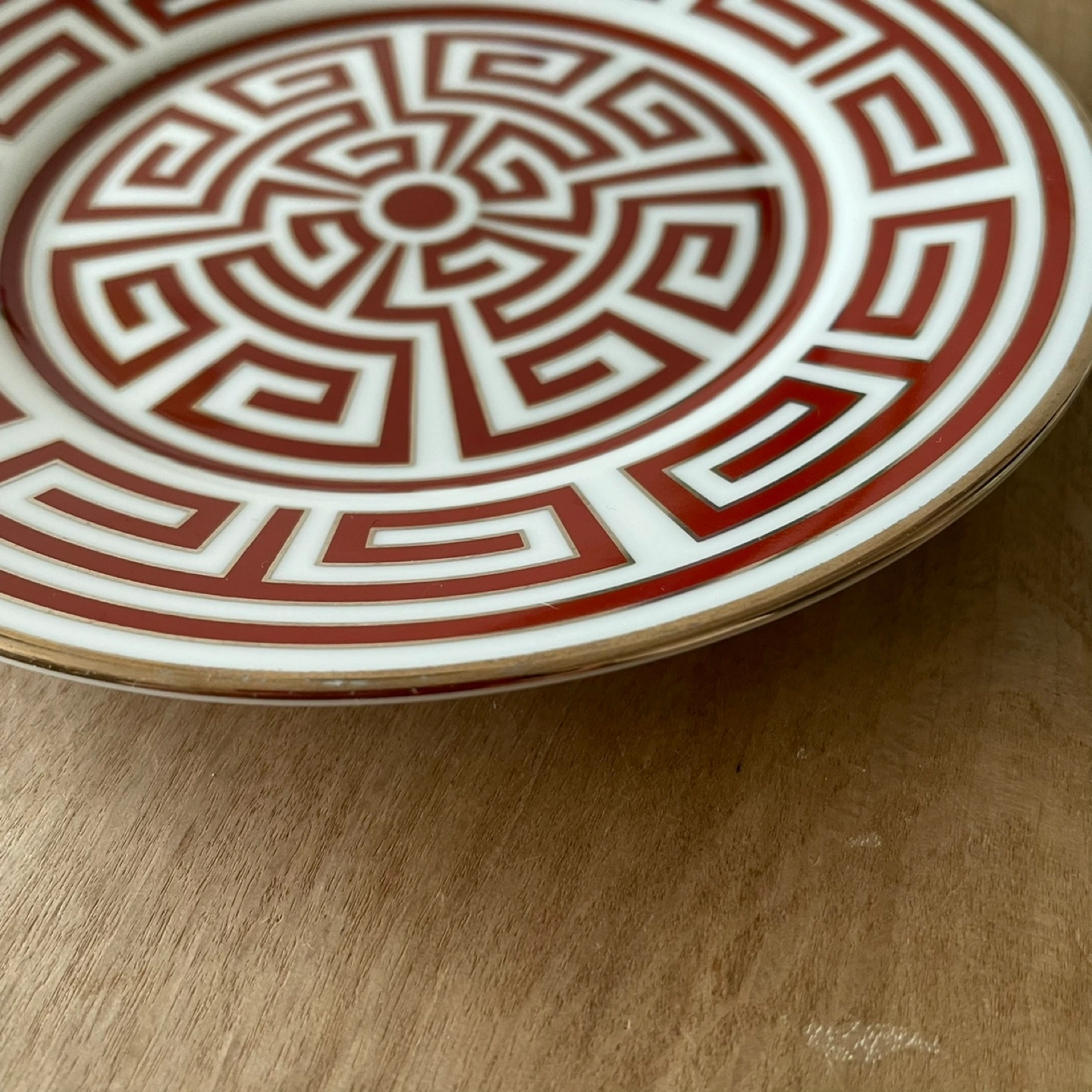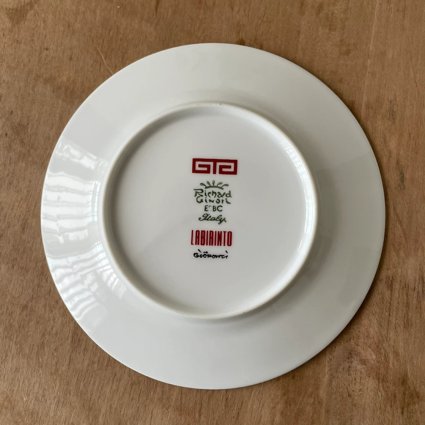 リチャードジノリ ラビリントシリーズ 16cm 色:スカーレット Richard Ginori Labrinto 3色あります ケーキ皿 小皿 取り分け皿 パン皿 デザートプレート Ø16cm 高さ約2cm 定価12,870円 数回使用 美しい迷宮を彷彿させる「ラビリント」は、1926年にジオ・ポンティが制作したパターンからインス ピレーションを得たコレクションです。古代文明とジオ・ポンティに代表されるイタリアモダンを見事に融合させ、規則的な配列が洗練されたイタリアンモダンの世界を際立たせています。 赤い幾何学模様が特徴のRichard Ginori製平皿。 - デザイン: 赤い幾何学模様の装飾 - ブランド: Richard Ginori - 製造国: Italy - モデル名: Labrinto - 形状: 平皿 特に目立つキズや汚れはございませんが、ユーズド品であることをご理解お願いいたします。 金の縁に薄いスレがある部分があります。 オリジナルの箱はありません。 ・ブランド:Richard Ginori ・シリーズ:LABIRINTO ・カラー:白、赤 ・サイズ:直径約16cm