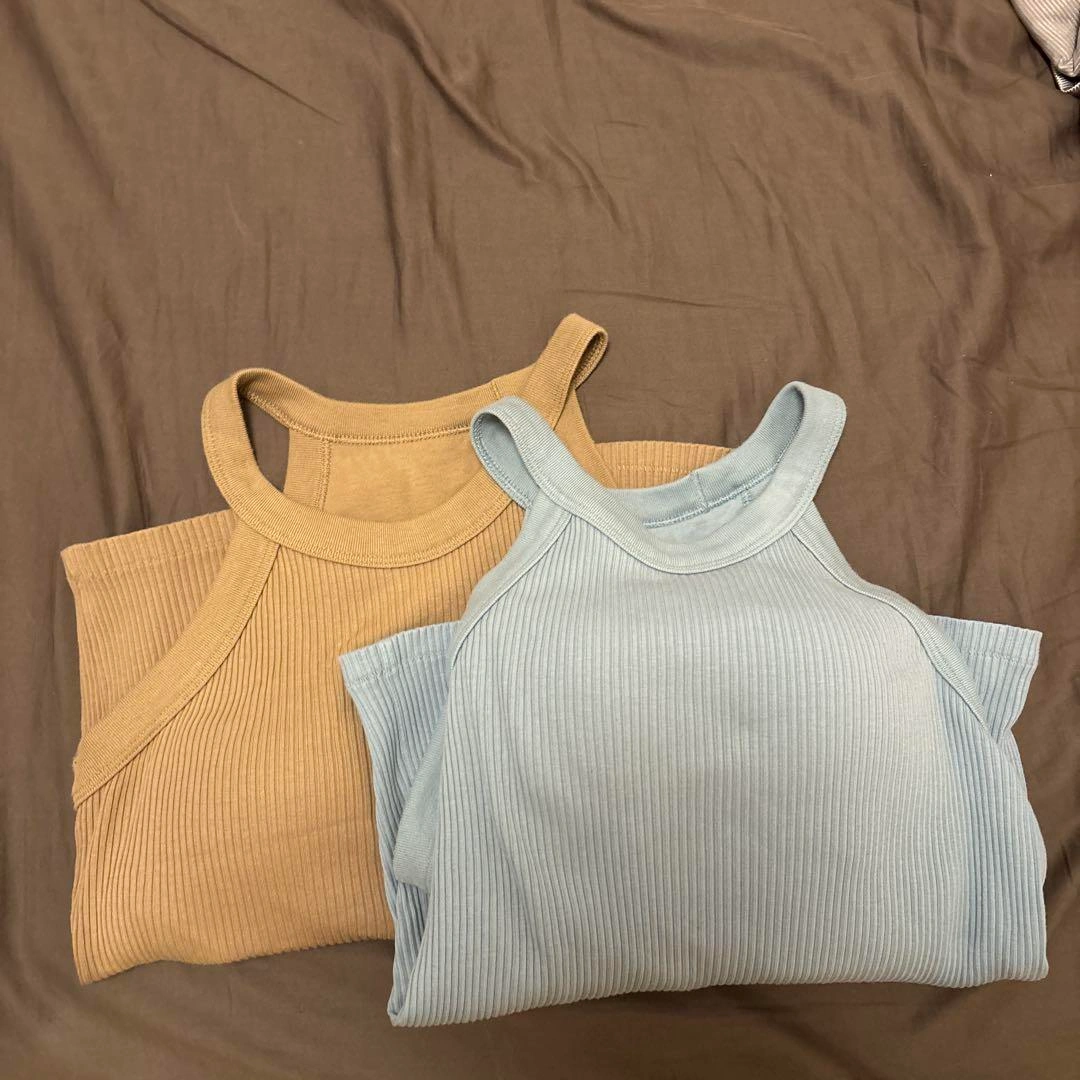 リブ編みデザインのタンクトップ、ベージュと水色の2枚セット、サイズSです。 - カラー: ベージュ - カラー: 水色 - サイズ: S ご覧いただきありがとうございます。 ご希望の方はお気軽にご連絡ください。