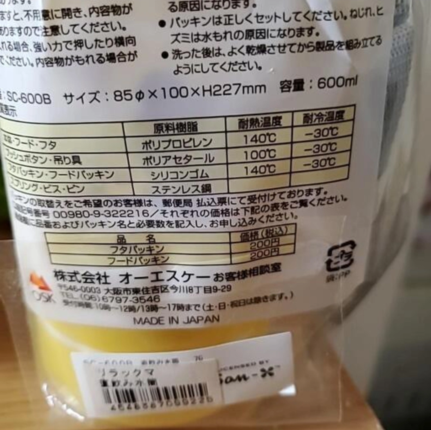 リラックマの水筒600mlです 【情報】 ブランド:リラックマ 型番:SC-600B 容量:600ml サイズ:85 x 100 x H227mm 【状態】 未使用品 安心の日本製 1度人に渡ったものなので 神経質の方はご遠慮下さい。