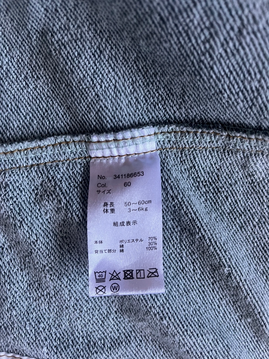 リーのカバーオールです ・サイズ:60 (身長50〜60cm, 体重3〜6kg) ・素材:ポリエステル70%, 綿30% ・色:グレー ・状態:使用感少なめ 中古品であることご了承ください