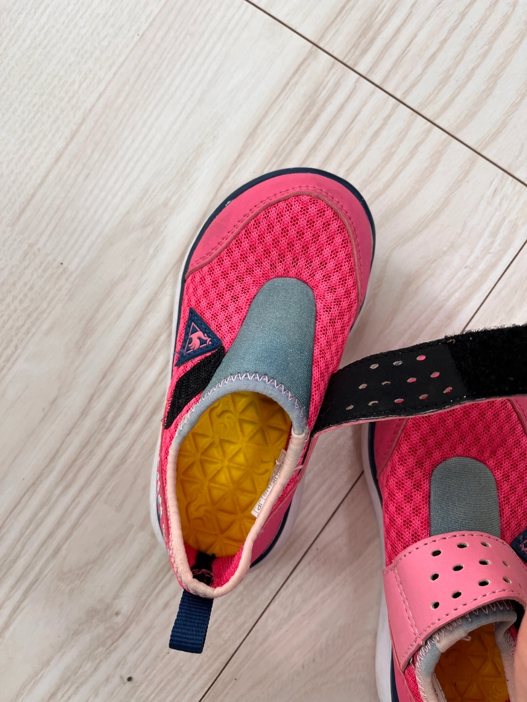 ・ブランド:ルコックスポルティフ ・キッズ用スニーカー ・カラー:ピンク ・マジックテープ式 ・使用感あり 海や川で履 けるマリンシューズです。 脱げにくい仕様になっています。 右の爪先に白い汚れがありますので、 ご了承いただける方でお願いします。 お渡しは夕方でしたらだいたい大丈夫です。 平日でも午前午後大丈夫な日もありますのでご相談ください。 近くまで来ていただける方を希望します。 よろしくお願いします。