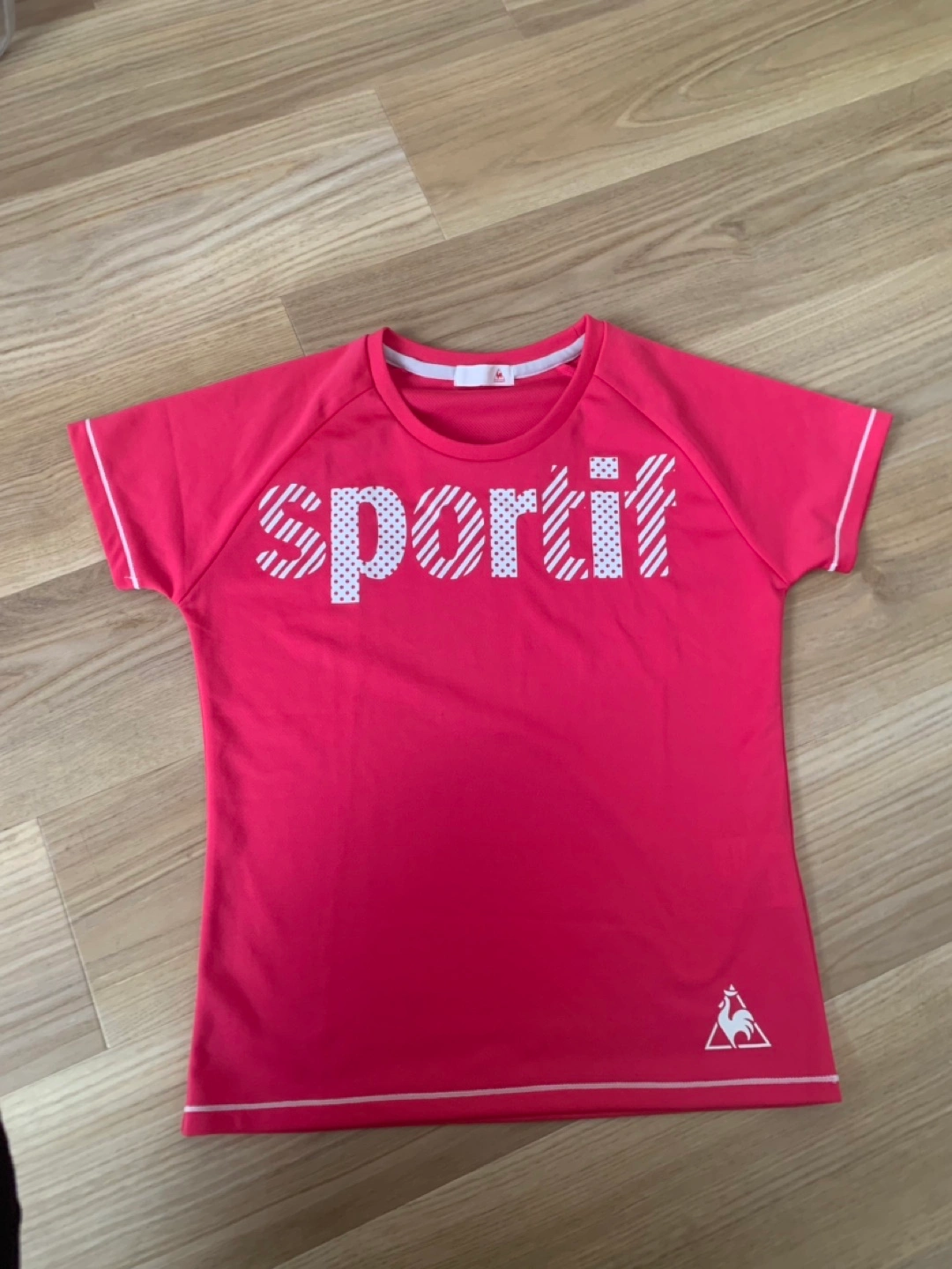 テニスで数回使用した、ルコックTシャツ150 cm です。 大人のXS-Sの方にも(^^) 乾きやすく、涼しい素材なので、暑い夏の登校や、 スポーツに良ければ 目立つ汚れなどはありません 胸囲70-78
