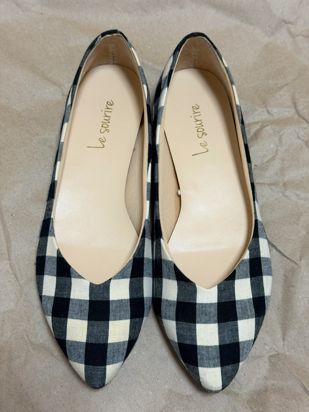 ルスーリールのフラットシューズです ・サイズ:24.0cm ・色:黒と白のギンガムチェック ・状態:使用感少なめ ヒール1.5㎝くらいです ご不明点があればお気軽にご連絡ください