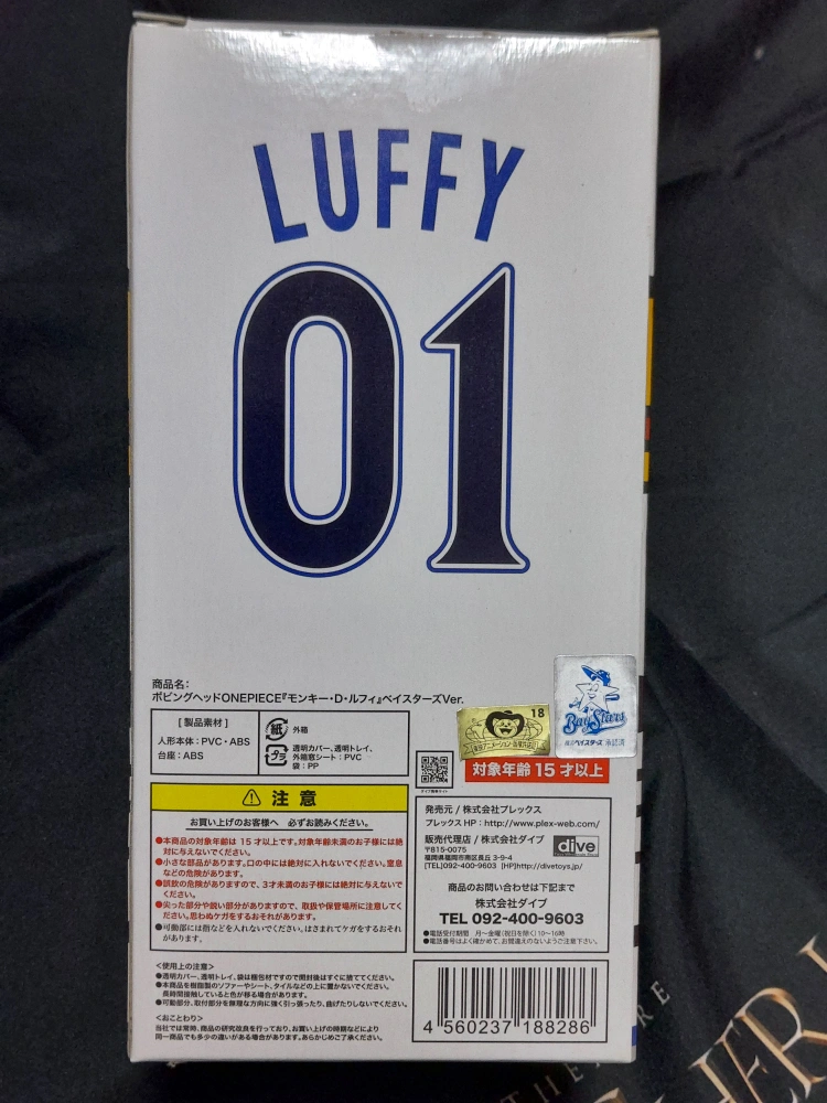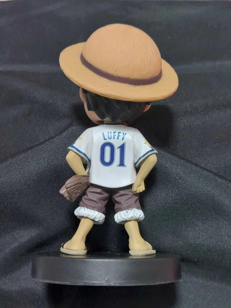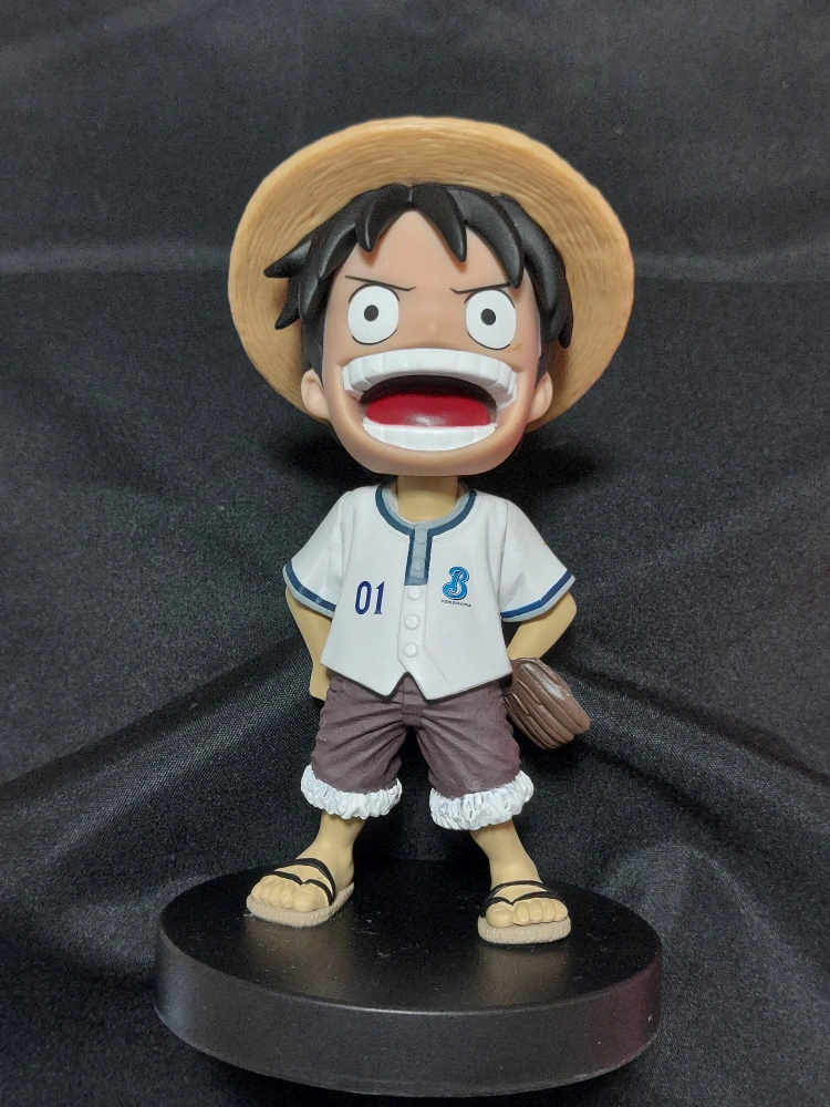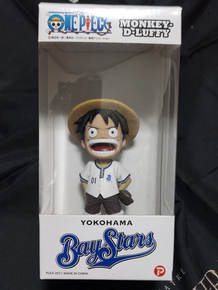 モンキー・D・ルフィのボビングヘッド(頭が揺れるフィギュア)です 人形の高さ14cm 箱の高さ20cm、幅10cm 2011年の横浜ベイスターズverです ずっと箱に入れて飾っていたので人形はきれいですが、箱の内側は汚れあります 古い紙特有のシミのようなものです(消毒済み)