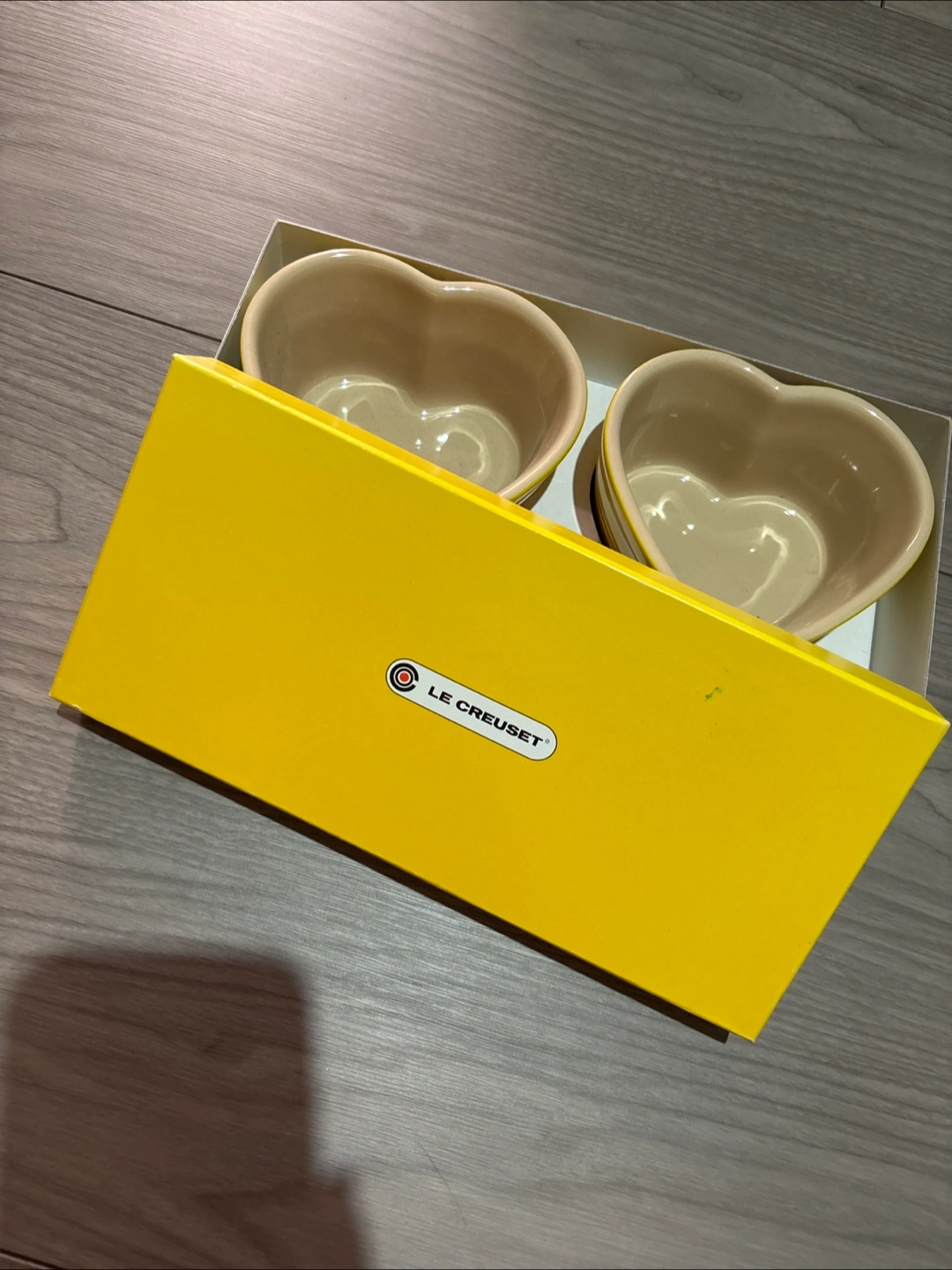 【情報】 ブランド:ル・クルーゼ 商品:ラムカン 個数:2個 型番:910029-00 箱付き ル・クルーゼの「ハート・ラメキン(Ramequin d’Amour)」2個セットは、愛らしいハート型のデザインが特徴的な、食卓を華やかに彩るアイテムです。 このラメキンは、耐熱性に優れたストーンウェア素材を使用しており、オーブンや電子レンジ、冷凍庫にも対応。デザートやグラタン、スープなど、さまざまな料理にお使いいただけます。また、小物入れとしても活用できる多用途性が魅力です。 箱が少し汚れています サイズ(一般的な仕様) • 直径:約9.5cm(ハート部分の横幅) • 高さ:約5.5cm • 容量:約200ml サイズは公式によって若干異なる場合があるので、正確な寸法が必要な場合は公式ウェブサイトや商品ページで確認することをおすすめします。