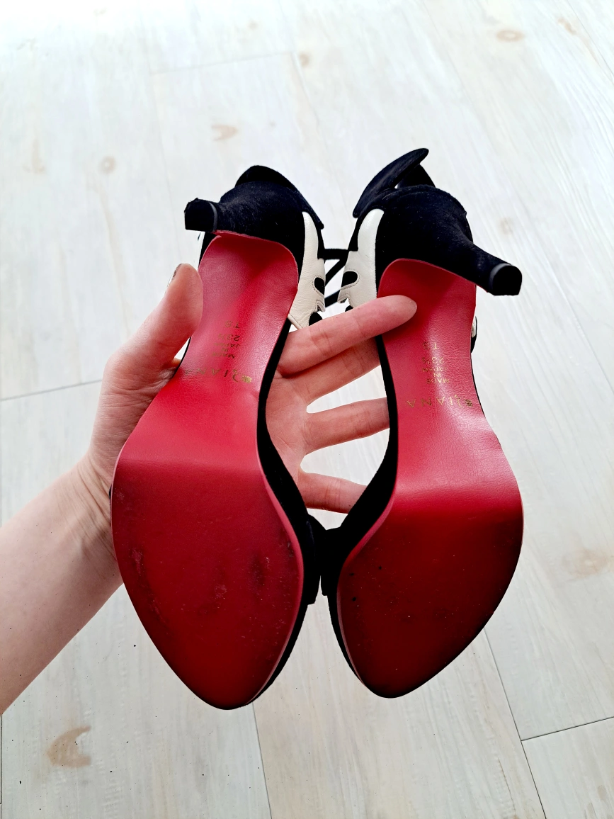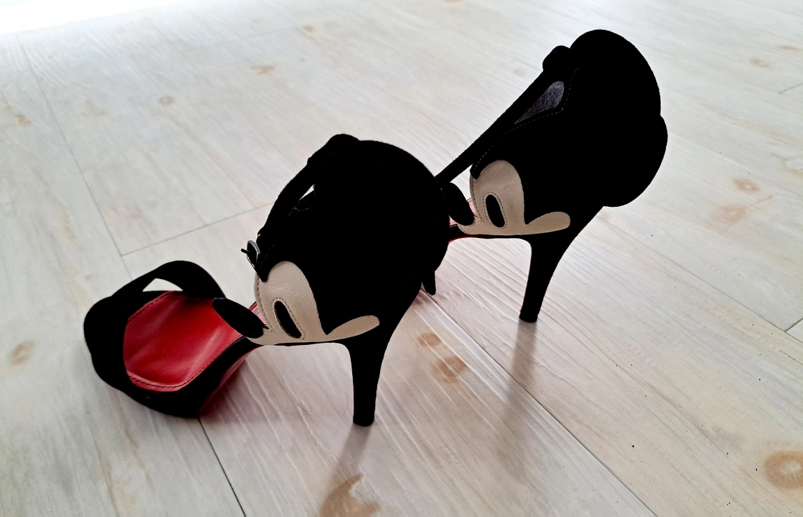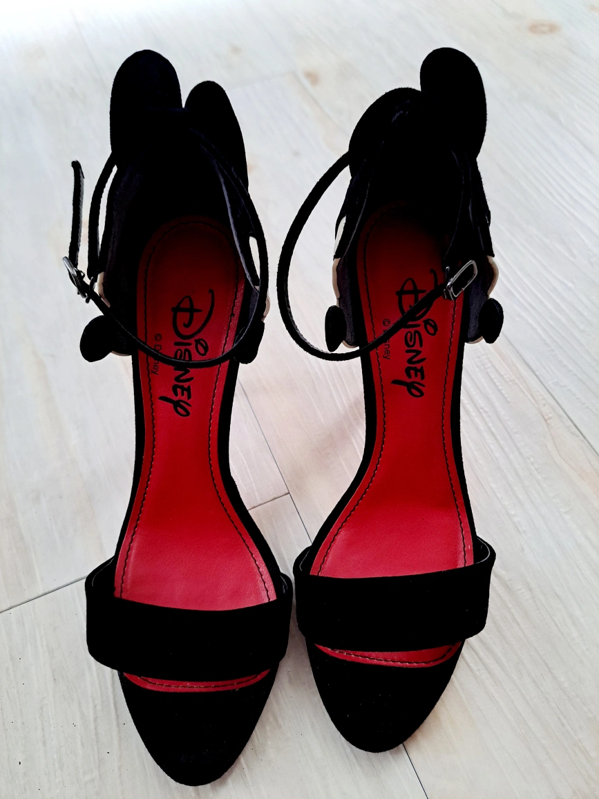 DIANAとディズニーがコラボしたサンダル! とてもレアな商品です! 天然皮革を使用し通気性、吸湿性が高くフィット感履き心地に優れています! ミッキーの顔と耳がとても可愛いですよ! サイズ23.5センチ! ヒール約7.5センチ! お箱もディズニー仕様で隠れミッキーがいますよ! ホテル会食の時に一度履きました! 状態は写真でご確認下さいませ! 足を骨折して以来、ヒールを履かなくなったので出品致します!
