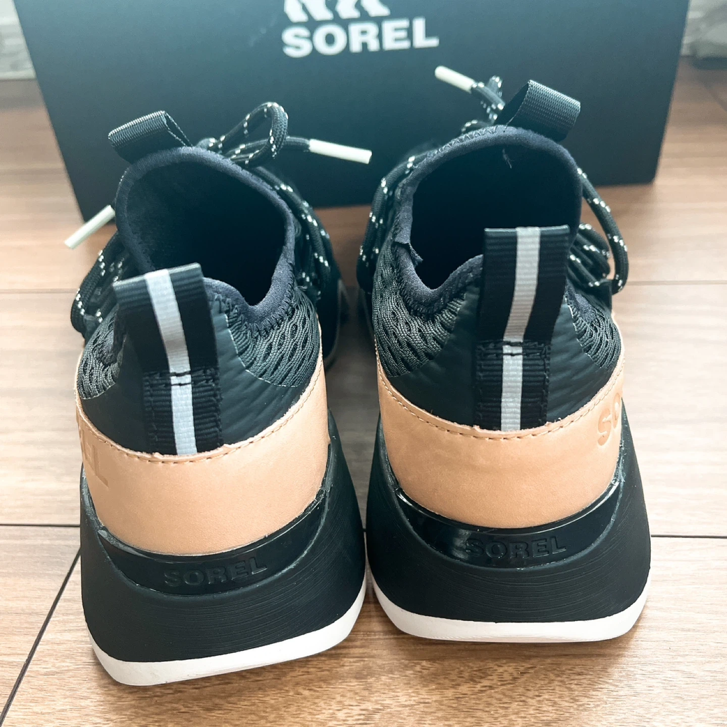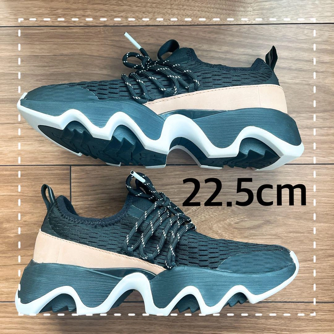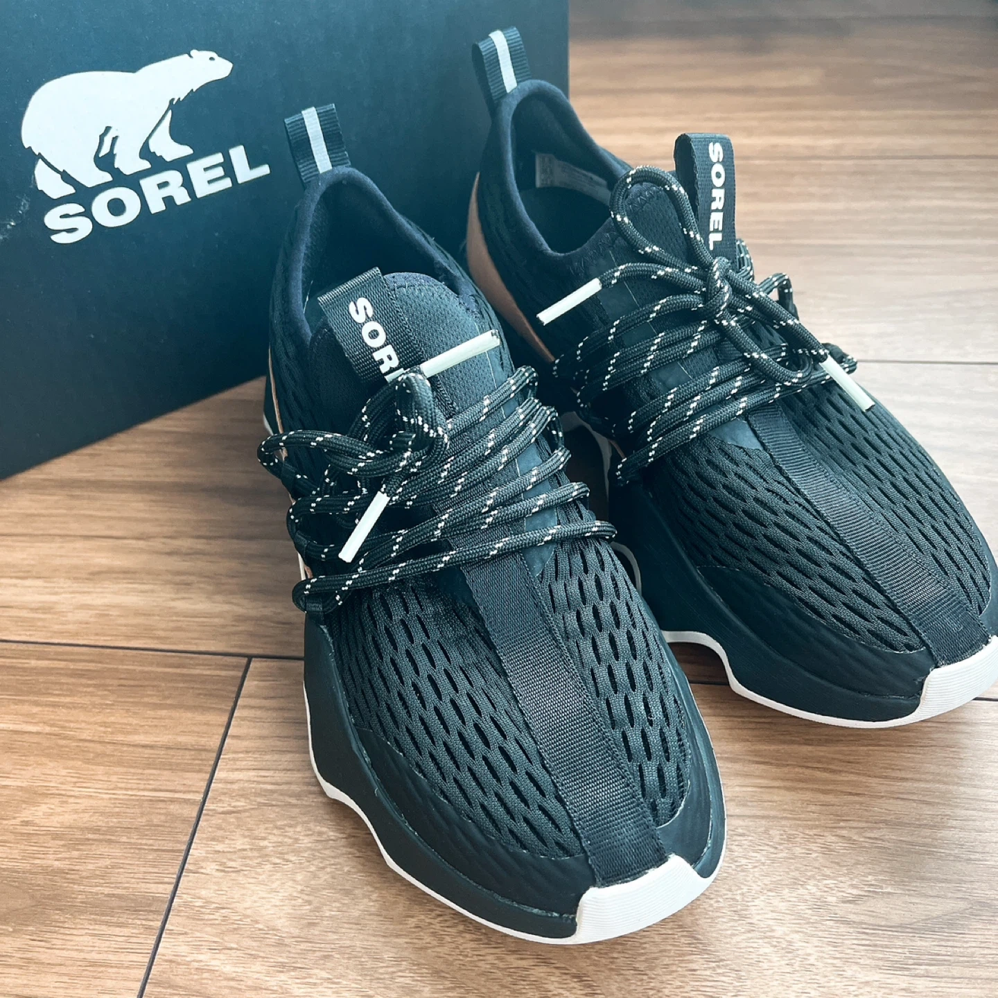 SOREL ソレル NL 4953 レディース スニーカー キネティックインパクト2 レース 厚底 22.5cm 箱、取扱説明書付 完売品のブラックカラー 1回短時間だけ試し履きしました。目立つ傷汚れなしの使用回数少ない美品です(*˙˘˙*)ஐ ソレルの定番人気キネティックコレクションからアイコニックなソールが魅力のスニーカー ソールのボリューム感に反しアッパーは通気性の良いメッシュ素材で軽やかな印象 に 植物由来の素材ブルームを配合したサステナブルで機能的なミッドソールは、軽量な上に弾むような弾力性を備えた独自開発のライブリーフォームを使用 ・アッパー:合成繊維 ・ボトム:合成底 合成ゴム ・ヒール高:約4.9cm ・重量:約250g